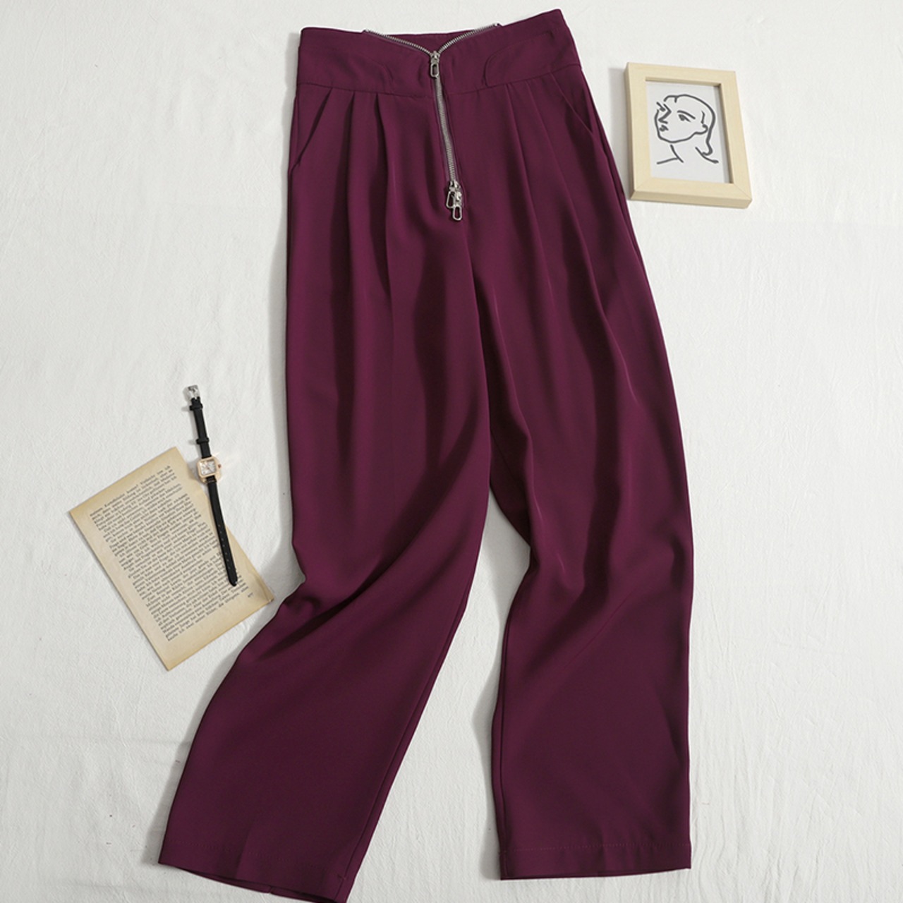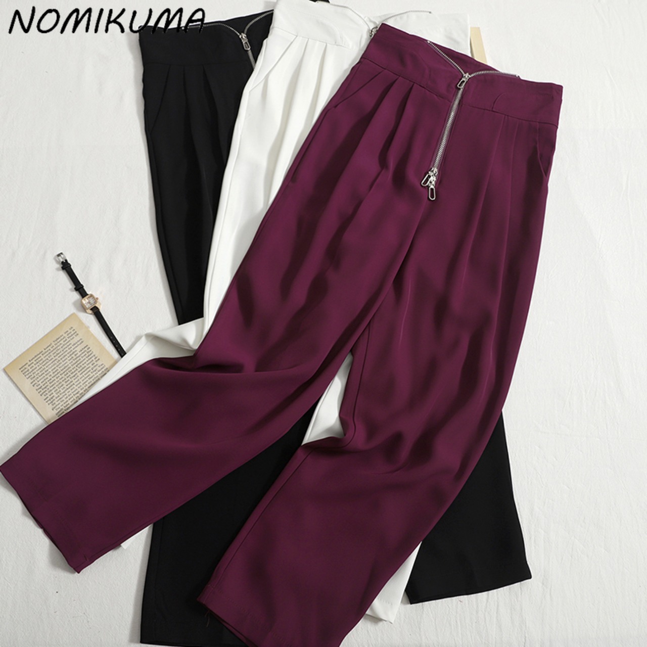 のみくまジッパーウエストスーツパンツ女性2022夏ロングパンツ因果パンツスタイル サマー 夏物 kor83339946179