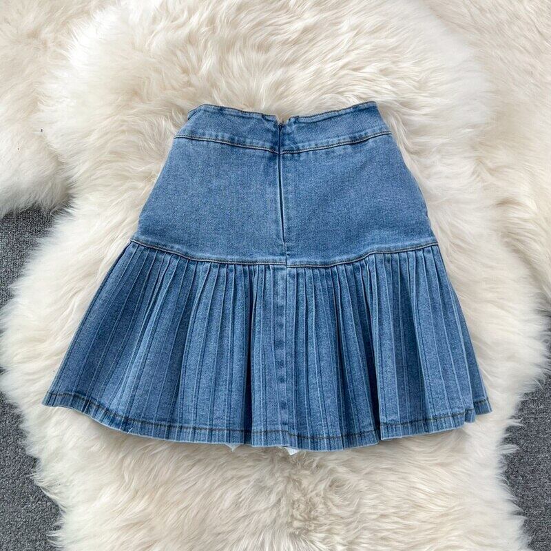 ノミクマ2022サマーウエストデミンスカートCausalA-lineミニプリーツスカートSweetJeansボトムス 大人ガーリー スウィート キュート カジュアル 夏物 Aライン kor60700226539