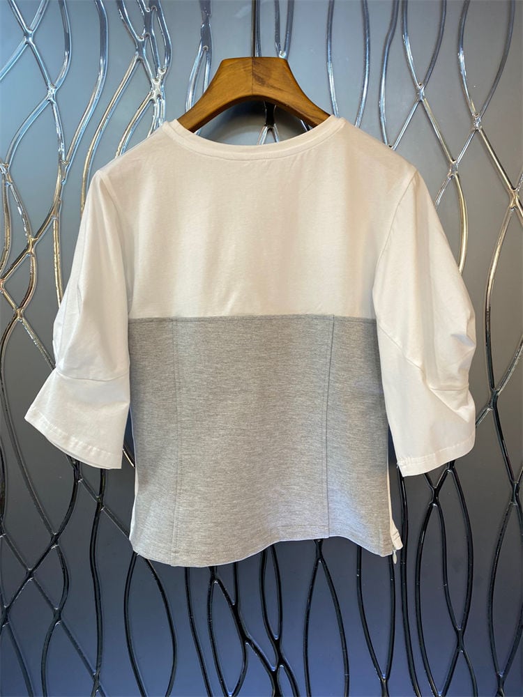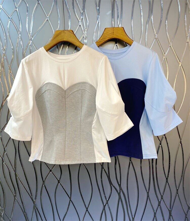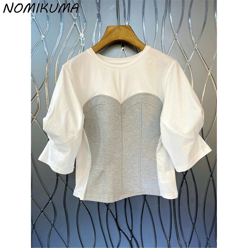 ノミクマヒットカラーTシャツレディースシックパフスリーブOネックグラフィックTシャツ2022サマースウィートシックトップスシャツ 大人ガーリー キュート カジュアル 夏物 kor65165118410