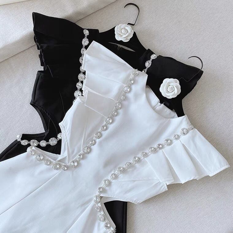 ノミクマダイヤモンドドレス女性2022夏中空アウトスリムウエストドレスシックなフリルノースリーブOネックVestidosDe サマー 夏物 kor18826216679