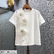 ノミクマグラフィックTシャツ2022サマーシック3DフォールドフラワーウーマンTシャツカジュアル半袖OネックスウィートトップスTシャツ ショート ハーフスリーブ 大人ガーリー キュート 夏物 フラワーデザイン kor54598462977