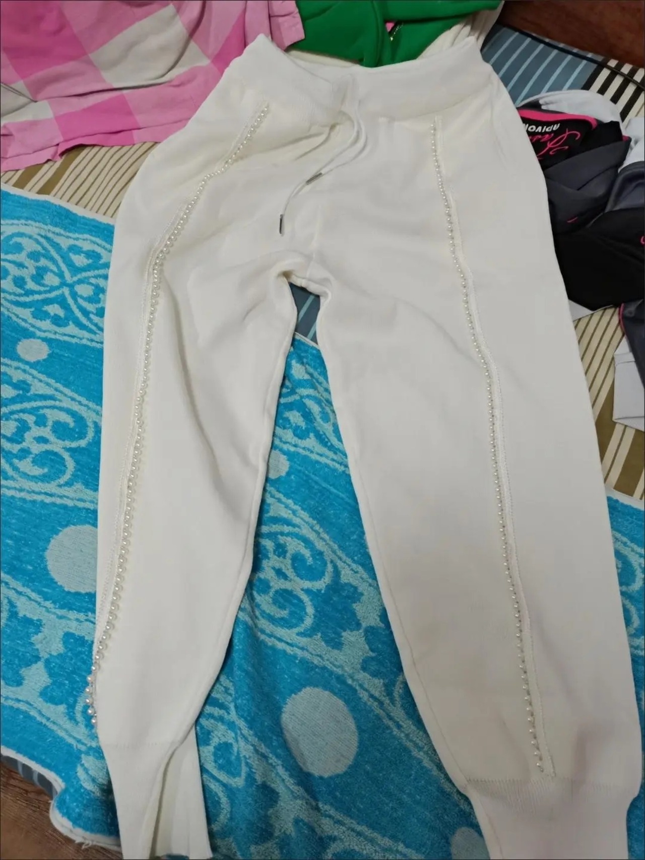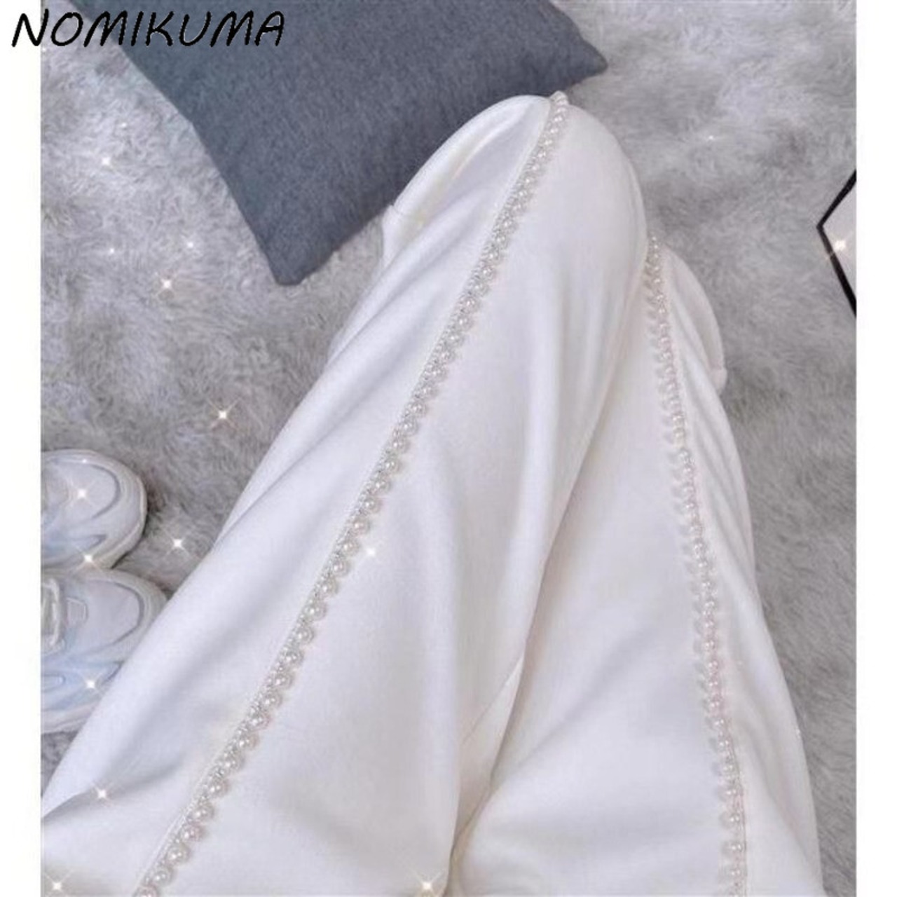 ノミクマシックビーズスウェットパンツ女性2022年春夏ロングパンツレースアップウエストハーレムパンツパンタロンデ スプリング 春物 サマー 夏物 kor2694612476