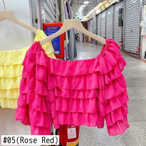 ノミクマシックレイヤードフリルシフォンブラウススラッシュネックハーフスリーブレディーストップコーザル2022サマーショートシャツ 半袖 夏物 kor83343362154