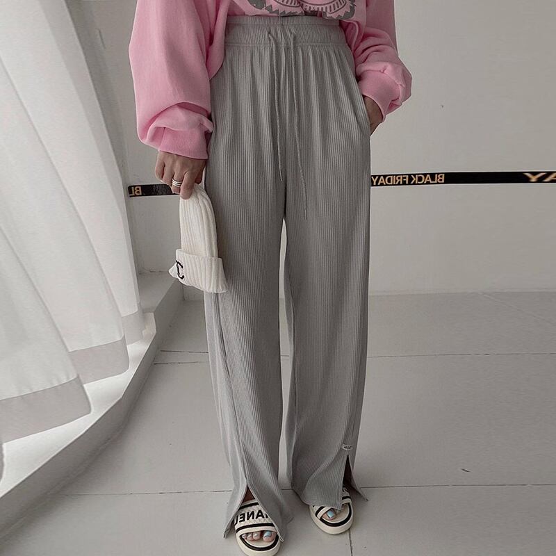 のみくまレースアップウエストウーマンパンツシックな夏の因果ダブルポケットロングパンツ2022スプリットパンツ サマー 夏物 kor75791407045