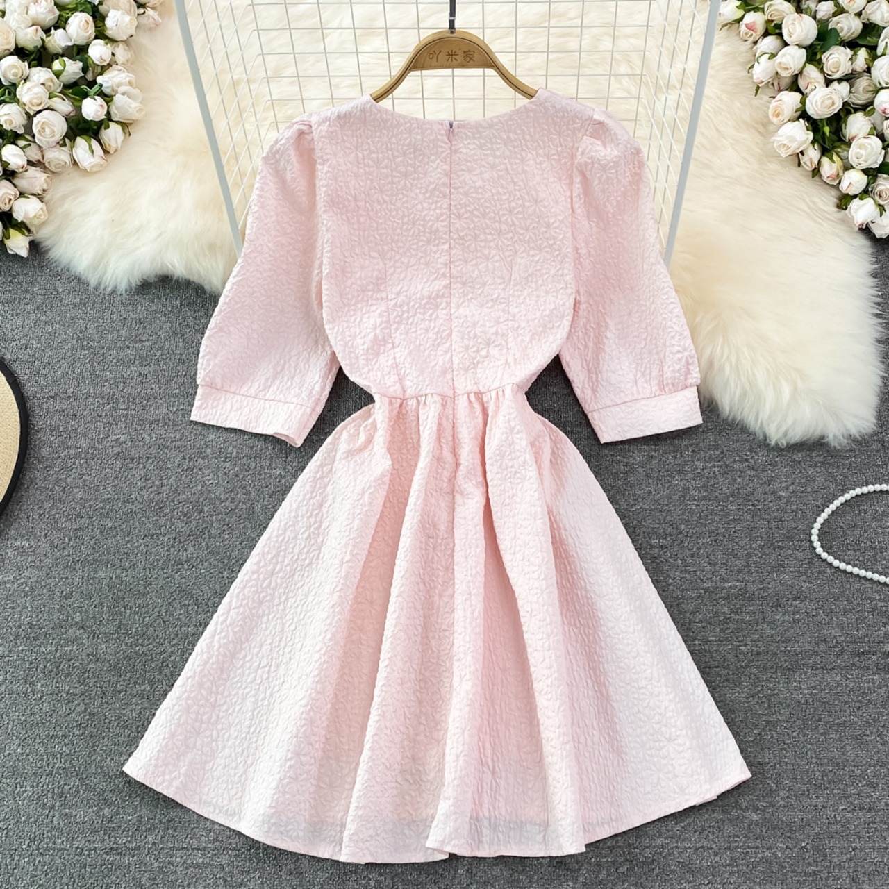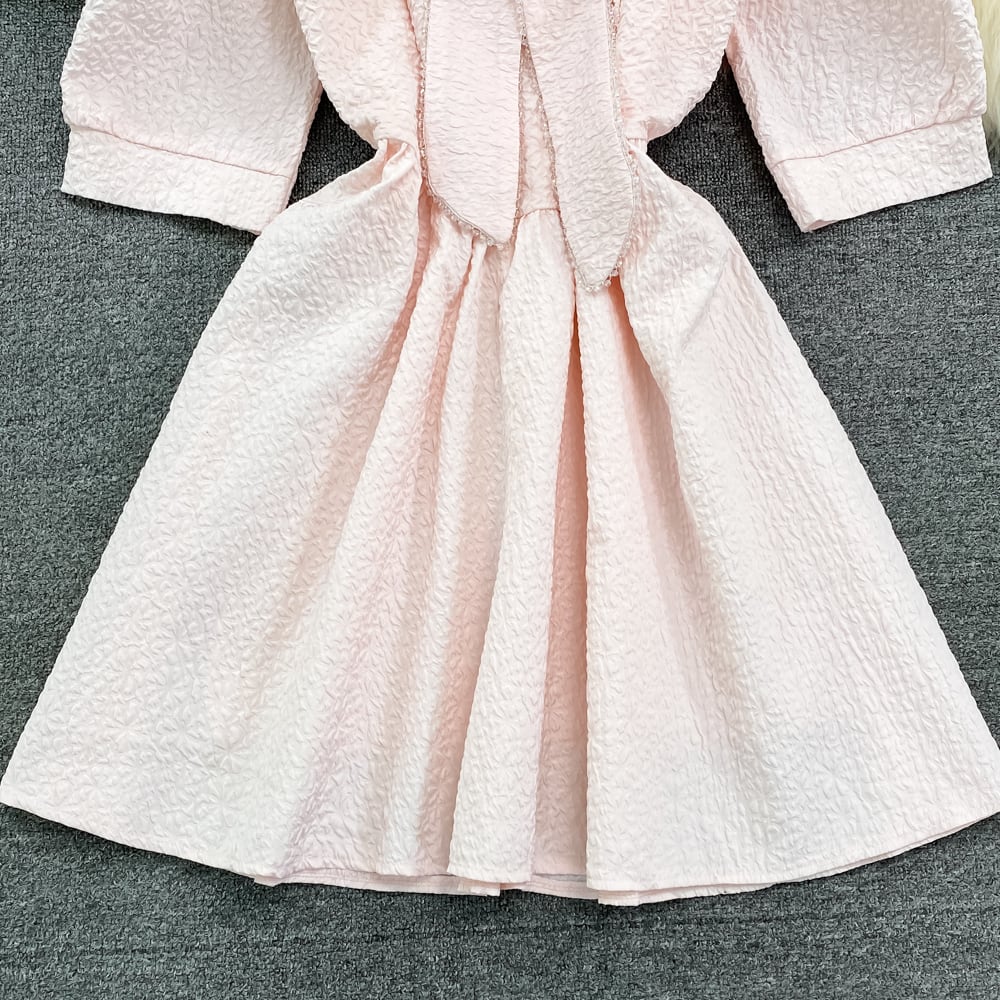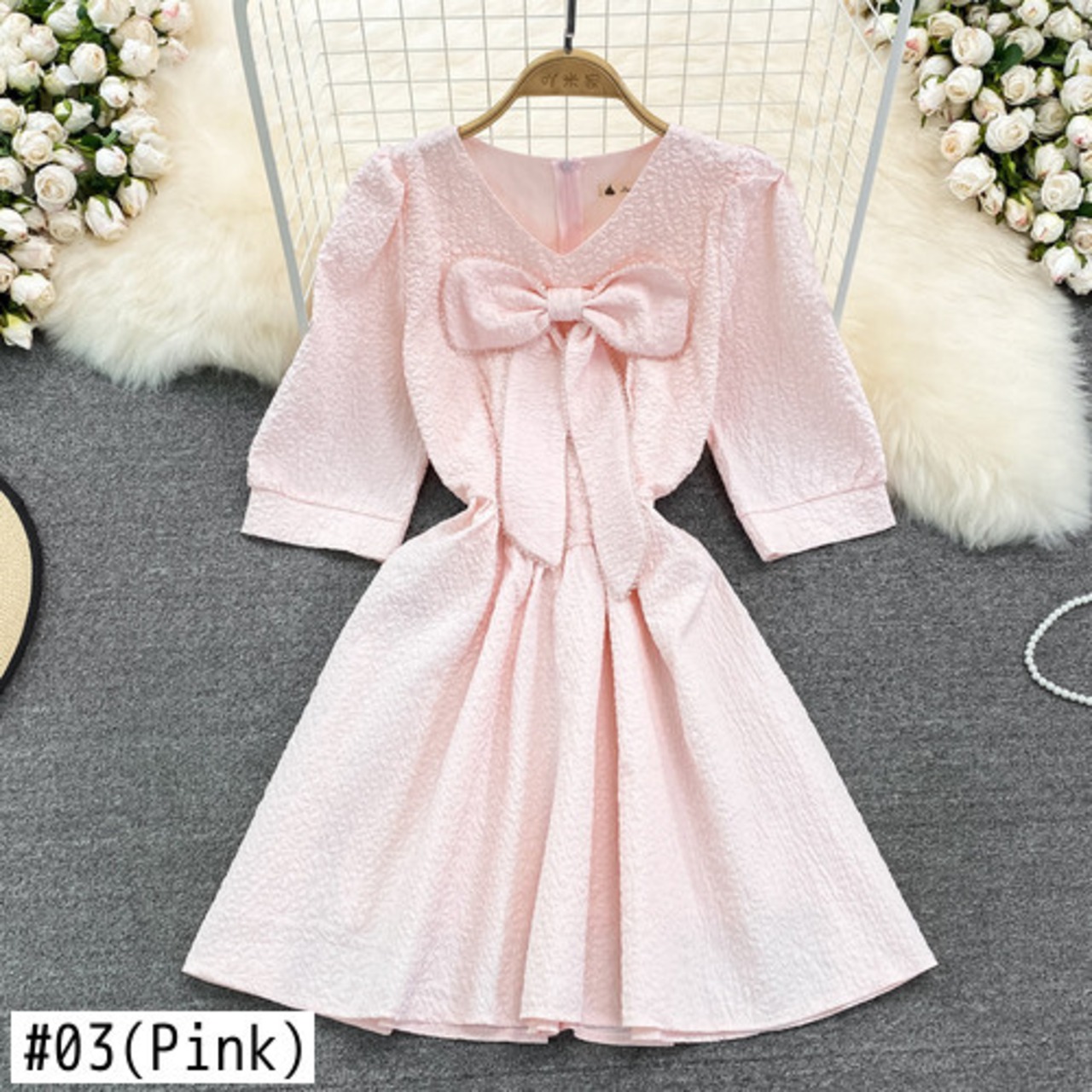 ノミクマウーマンドレス2022サマーハーフパフスリーブドレスシックなスウィートボウノットVネックウエストカジュアルAラインVestidosDe リボン 大人ガーリー キュート 夏物 kor88080874895