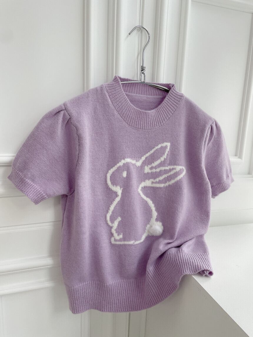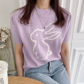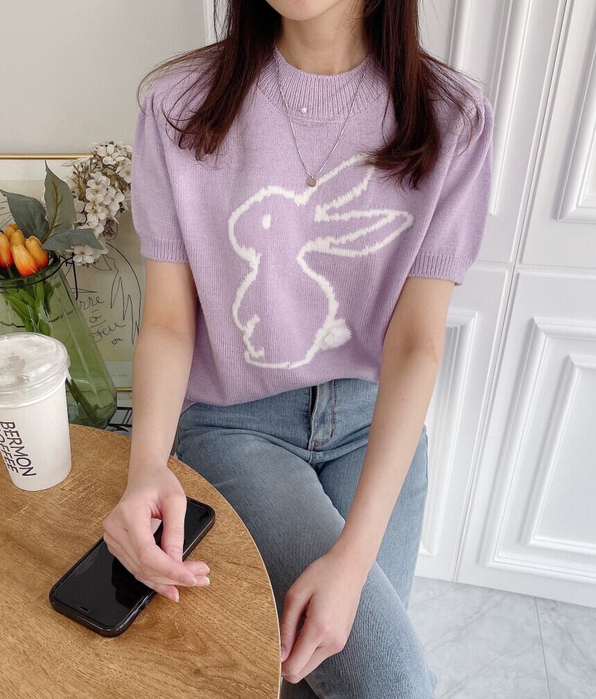 のみくまシックな漫画の女性のセーター半袖Oネックニット因果2022夏の甘いプルオーバーニットトップス ショート ハーフスリーブ 大人ガーリー スウィート キュート カジュアル サマー 夏物 kor81943589900