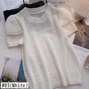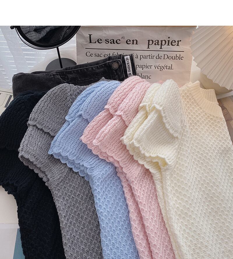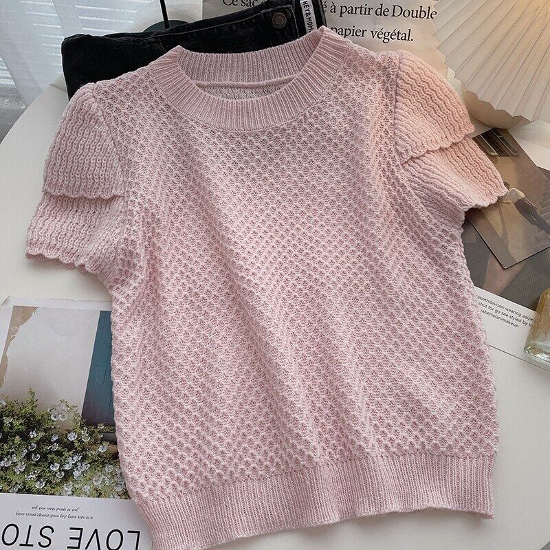 ノミクマソリッドOネック半袖プルオーバーニットレディース2022サマーセーターシックなスウィートカジュアルニットトップス ショート ハーフスリーブ 大人ガーリー キュート 夏物 ソリッドカラー kor72145563205