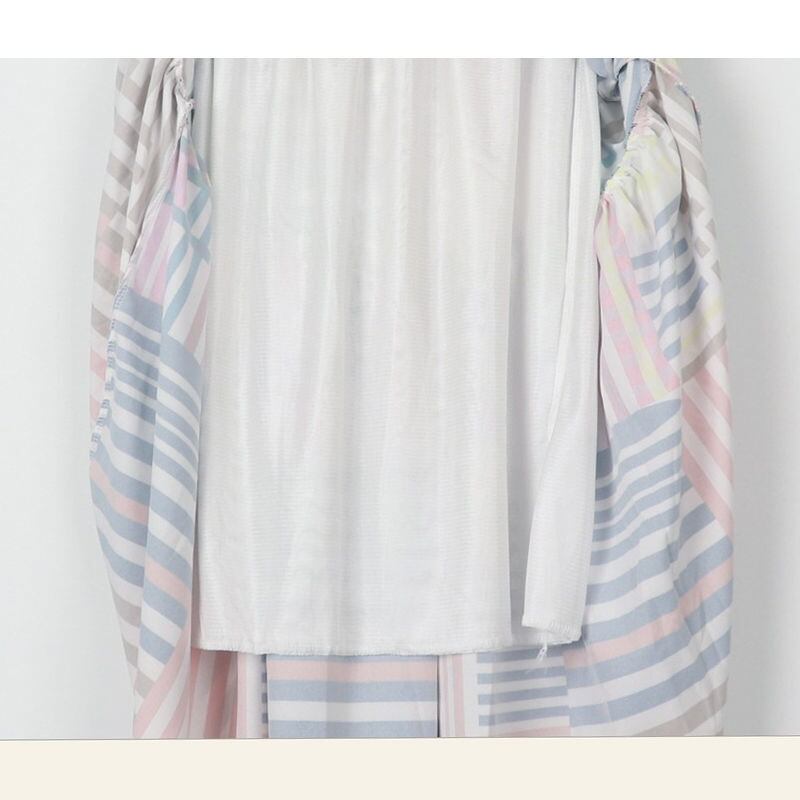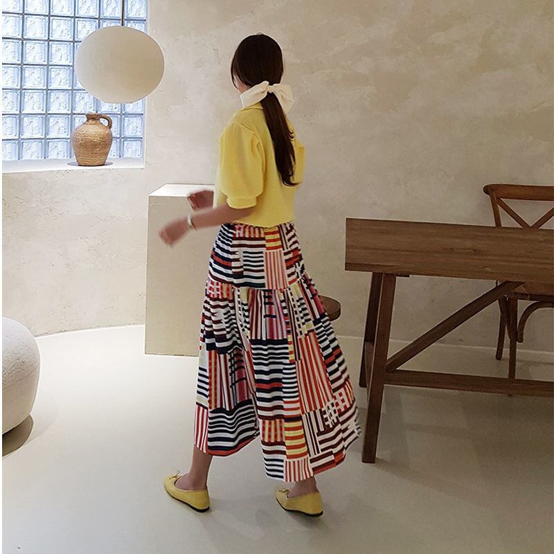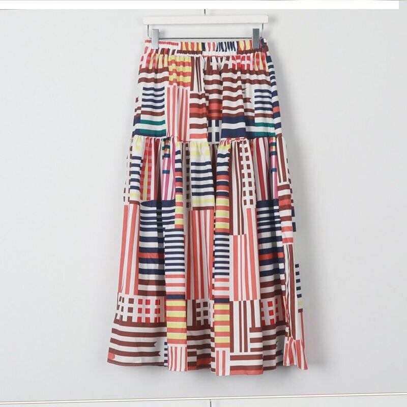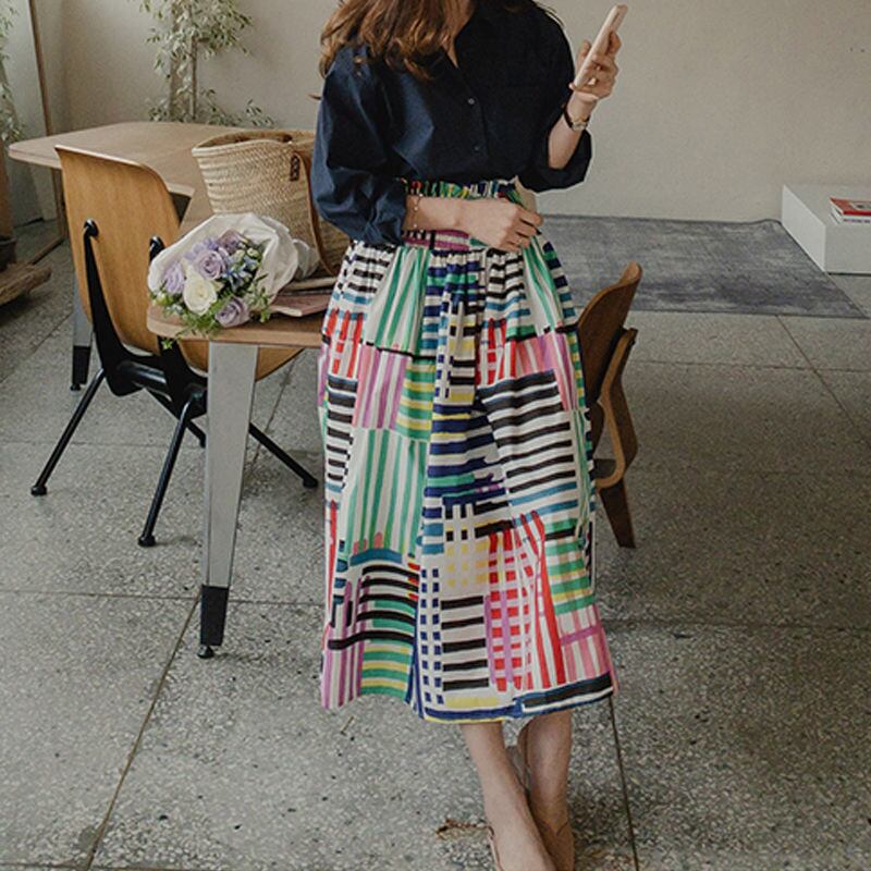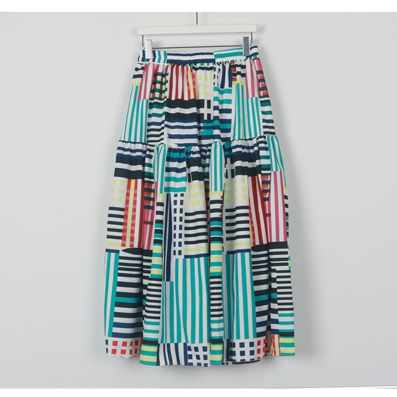 のみくまイレギュラーストライププリントパッチワークスカートレディースウエストカジュアルAラインスカート2022サマーボトムファルダス 夏物 kor16820339913