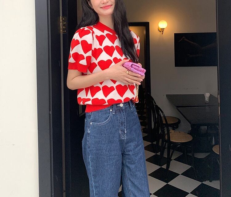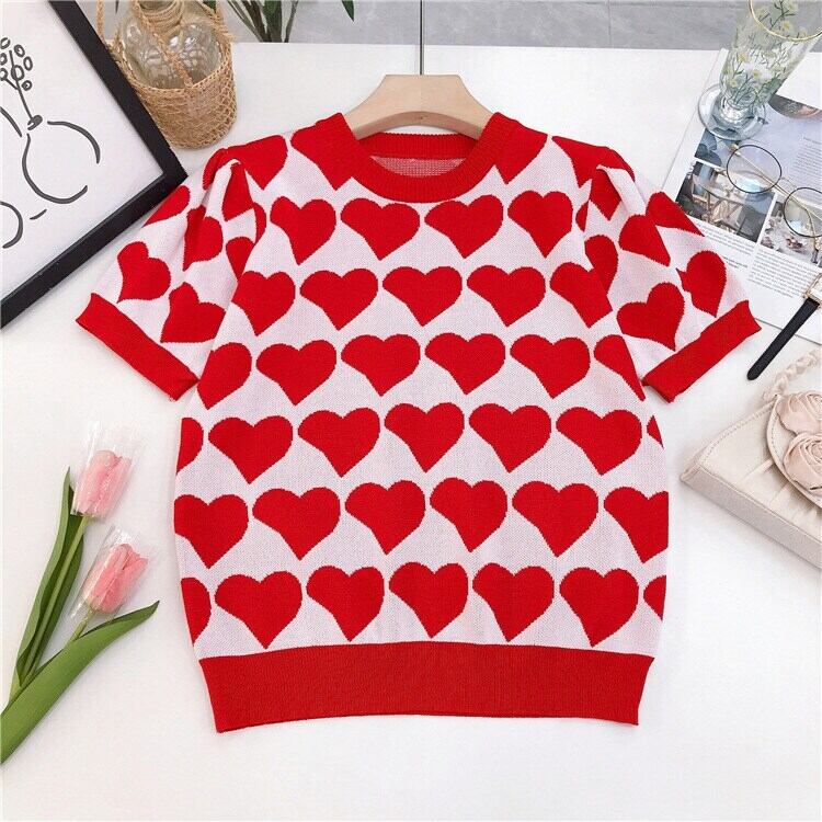 NomikumaLoveHeartプルオーバーセーターCausalPuffスリーブOネックニットトップス2022SummerSweetWomenニットジャンパー 大人ガーリー スウィート キュート カジュアル サマー 夏物 kor29257372529