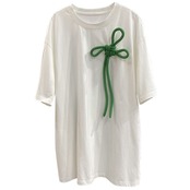 ノミクマシックヒットカラーボウノットグラフィックTシャツカジュアル半袖OネックウーマンTシャツ2022サマーファディオントップスシャツ ショート リボン ハーフスリーブ 夏物 kor34462555611