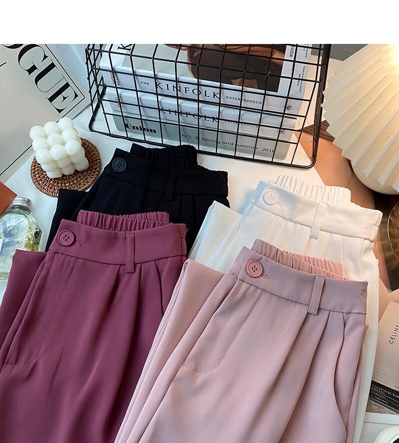 ノミクマエラスティックウエストスーツパンツ2022サマーロングパンツCausalSolidWide Leg Pants De 伸縮 夏物 ワイドレッグ ワイドパンツ ソリッドカラー kor37150501773