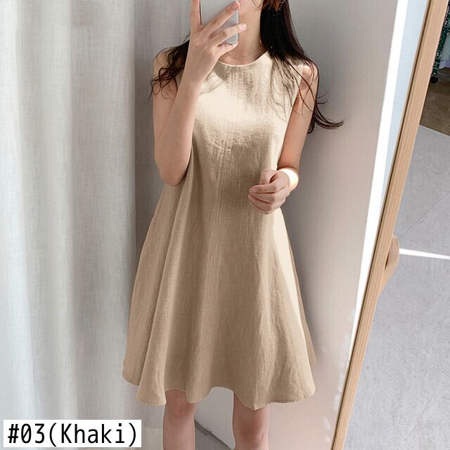 サマーノースリーブOネックウーマンドレスCausalSolidCotton Linen Vestidos Sweet A-line Dresses コットン 大人ガーリー スウィート キュート カジュアル 夏物 Aライン ソリッドカラー kor27540250815