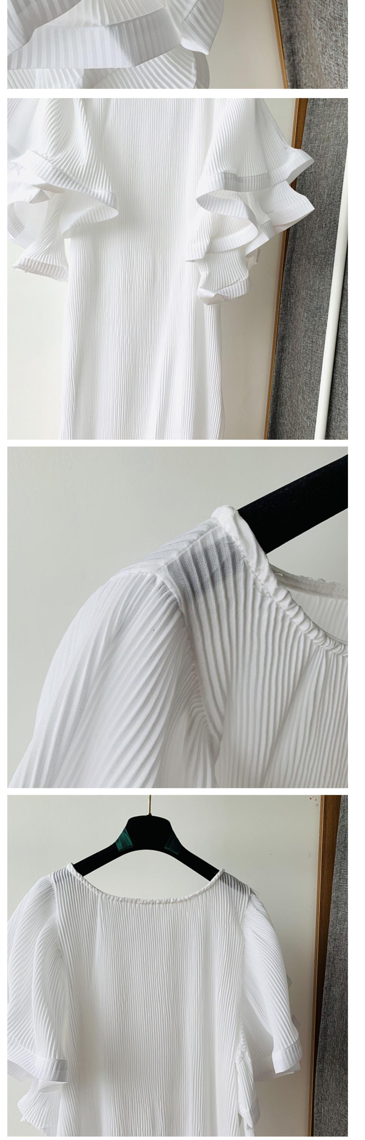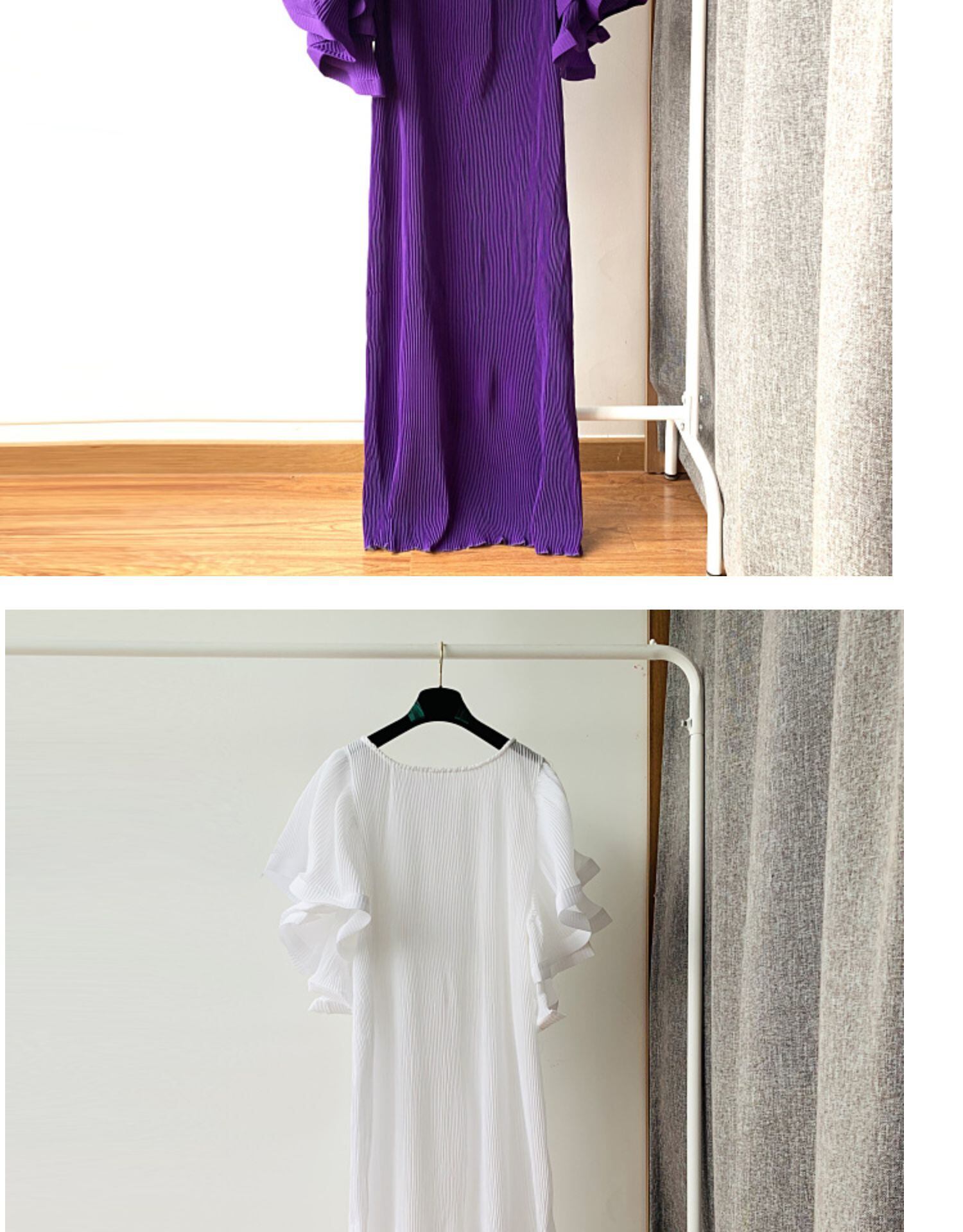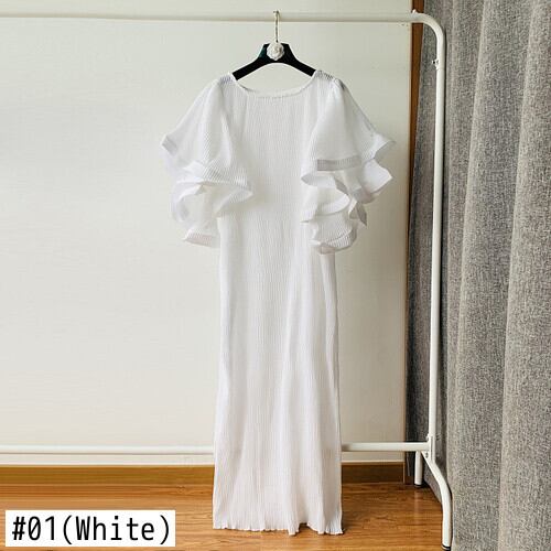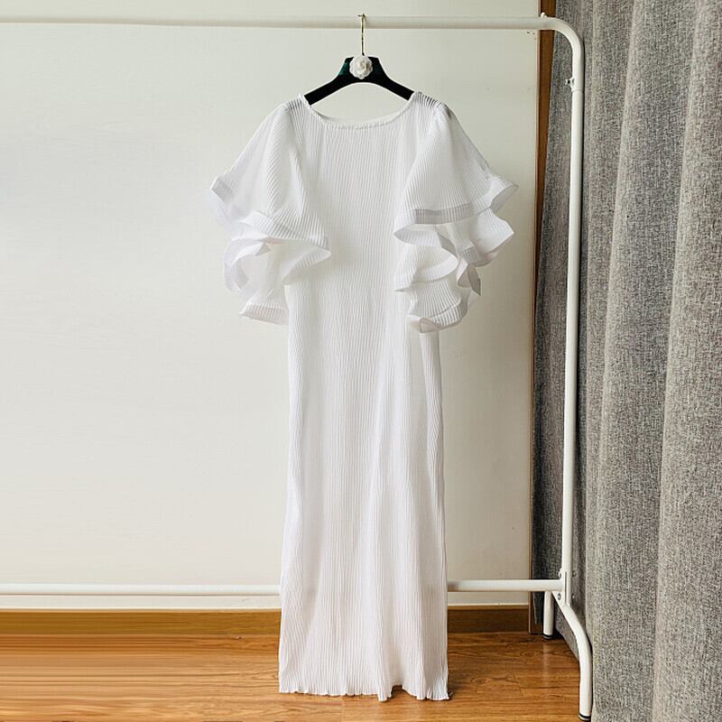 ノミクマ2022ウーマンプリーツドレスシックなハーフバタフライスリーブOネックワンピースCausalSolidBestidos ソリッドカラー kor63083601891