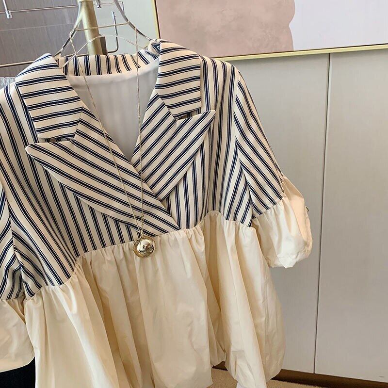 Nomikuma Chic Stripe Hit Color Patchwork Blouses Causal Notched Collar Woman Shirts 2022 Summer Sweet シャツ ブラウス 大人ガーリー スウィート キュート カジュアル サマー 夏物 ストライプ kor60978106523