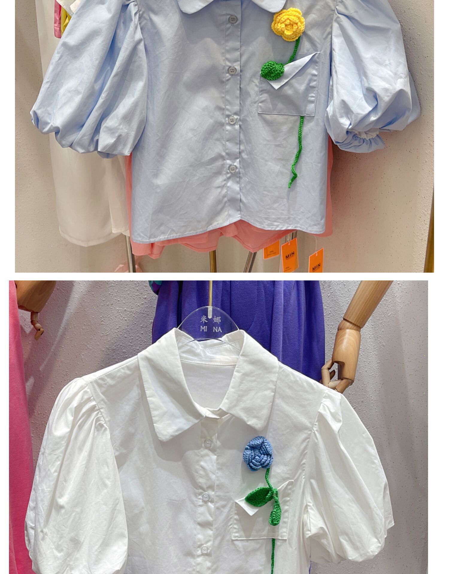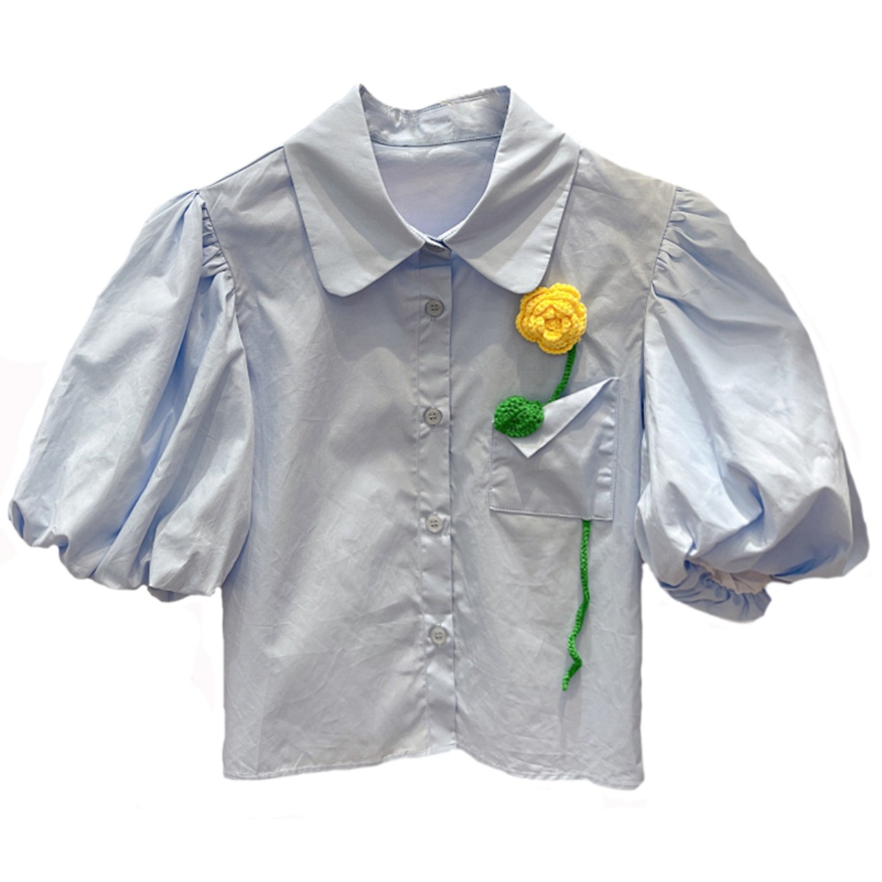 ノミクマレディーストップスシックピーターパンカラーパフスリーブブラウスシャツ2022サマーシックフラワーショートデ 夏物 フラワーデザイン kor45487183121