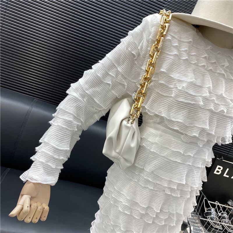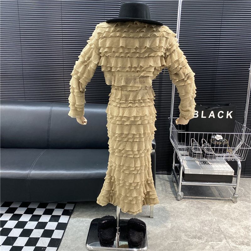 ノミクマ2022年夏レディースセットシックなレイヤードフリル2枚長袖Oネックショートトップ+ウエストマーメイドスカート ロング サマー 夏物 kor28613694932