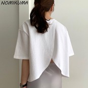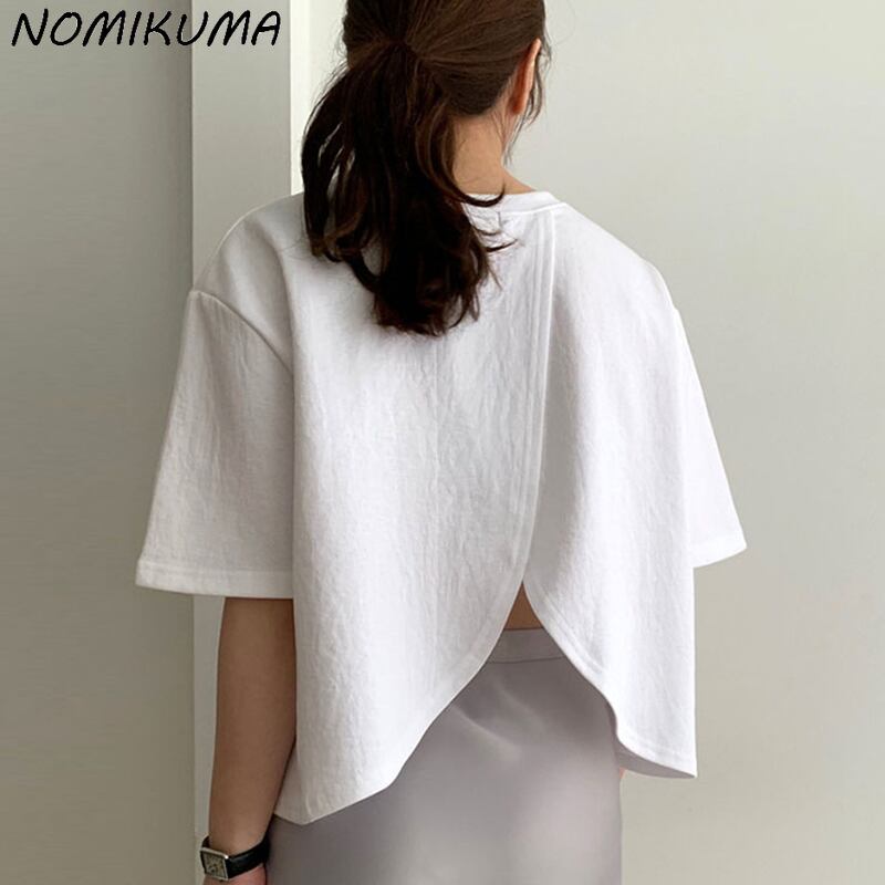 Nomikuma Causal Back Irregular Split Woman Tshirts 2022 Summer Short Sleeve O-neck Graphic Tee Solid Tops Shirt ショート 半袖 ハーフスリーブ シャツ サマー 夏物 Oネック Tシャツ ソリッドカラー kor36203095747