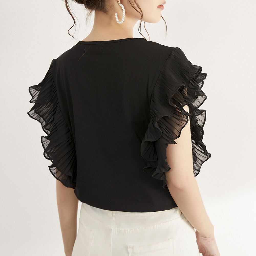 のみくまシフォンフリル半袖レディースブラウス因果Oネックプルオーバートップス2022サマースタイル ショート ハーフスリーブ 夏物 kor25486950766