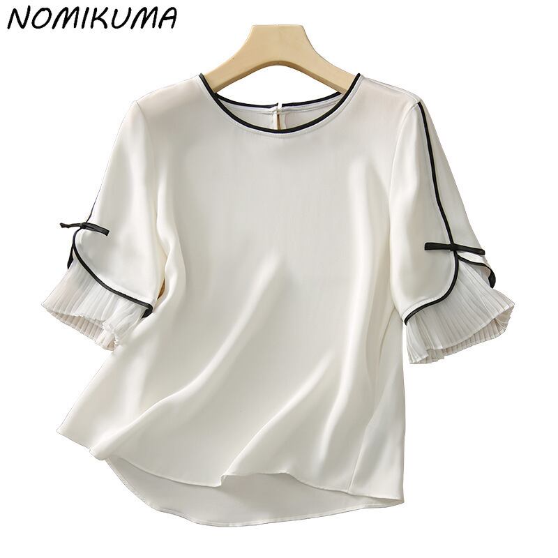 NomikumaFodsPatchworkハーフスリーブブラウスCausalO-neckSummer 2022 Womens Top Pullover De 半袖 サマー 夏物 Oネック kor43166597157