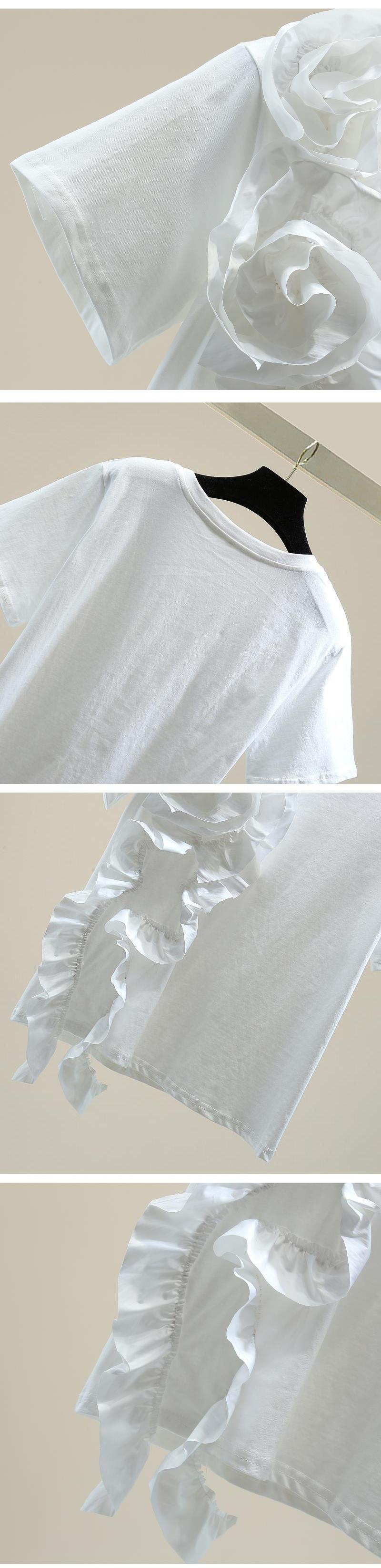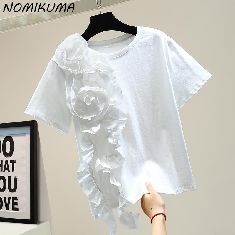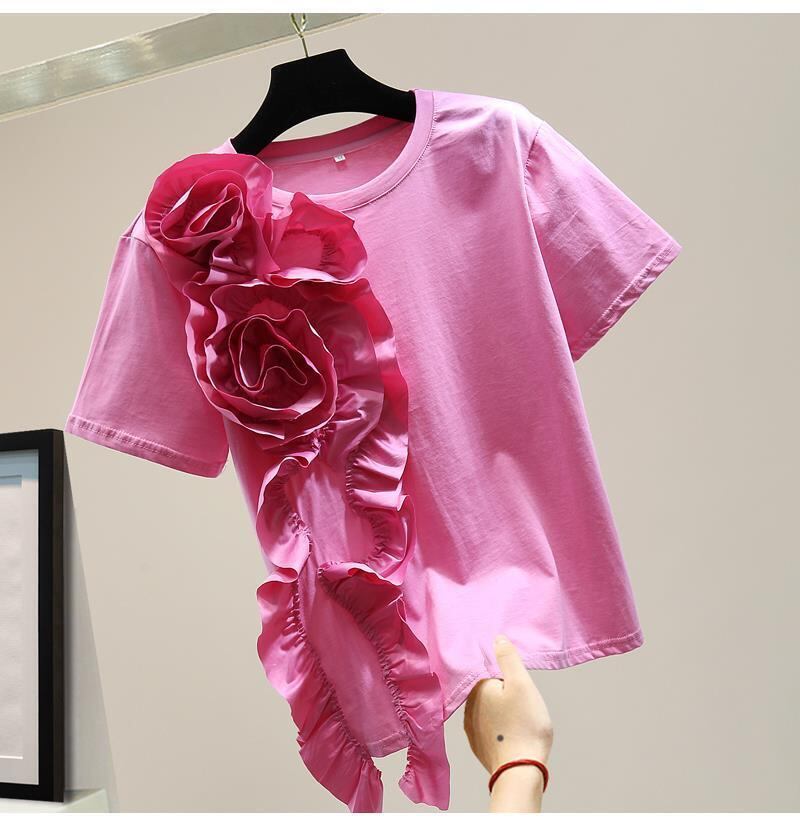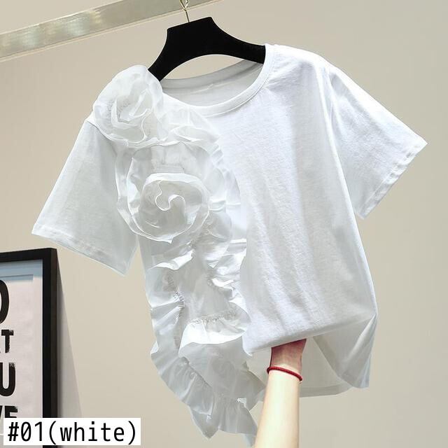 のみくまシック3DフラワーウーマンTシャツ2022夏半袖OネックグラフィックTシャツカジュアルトップスTシャツ ショート ハーフスリーブ サマー 夏物 フラワーデザイン kor36097478009