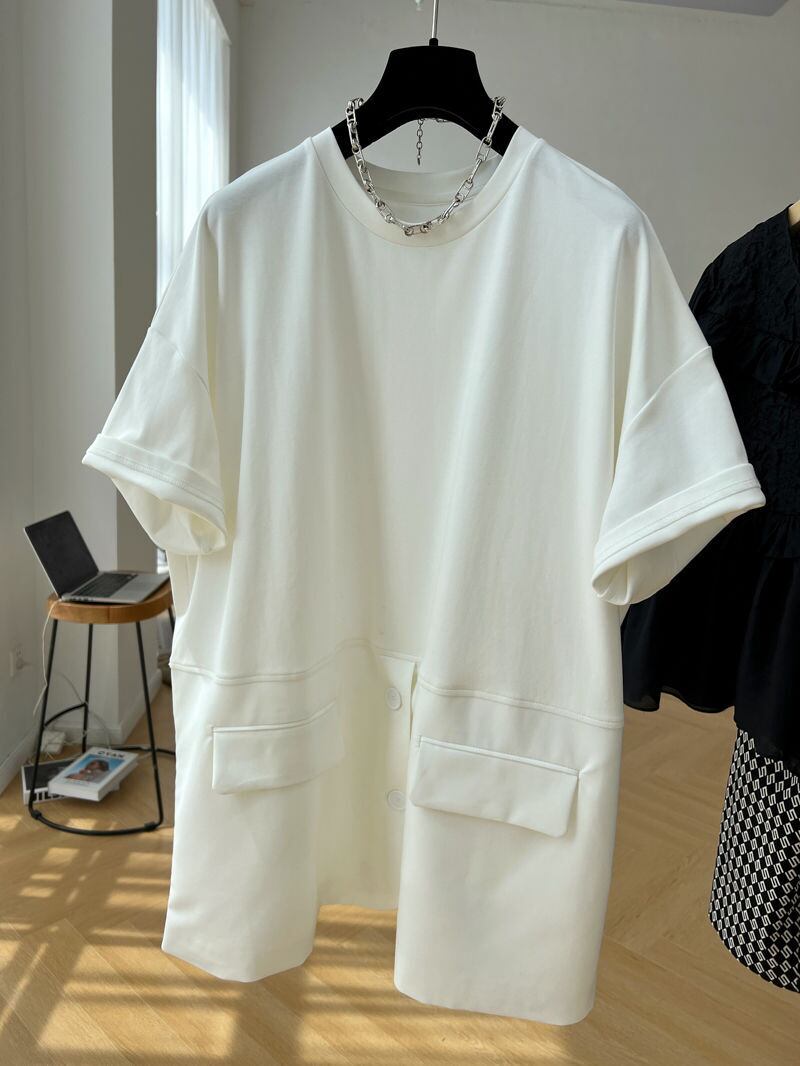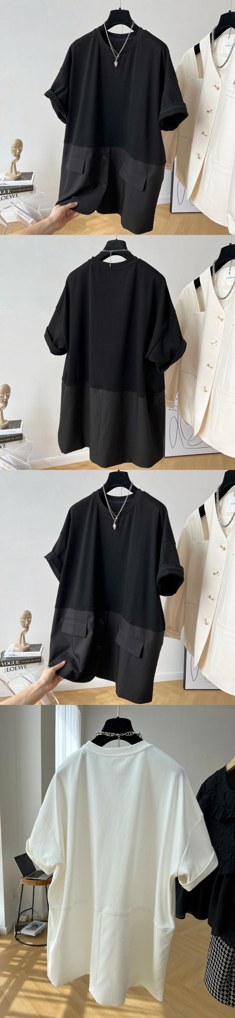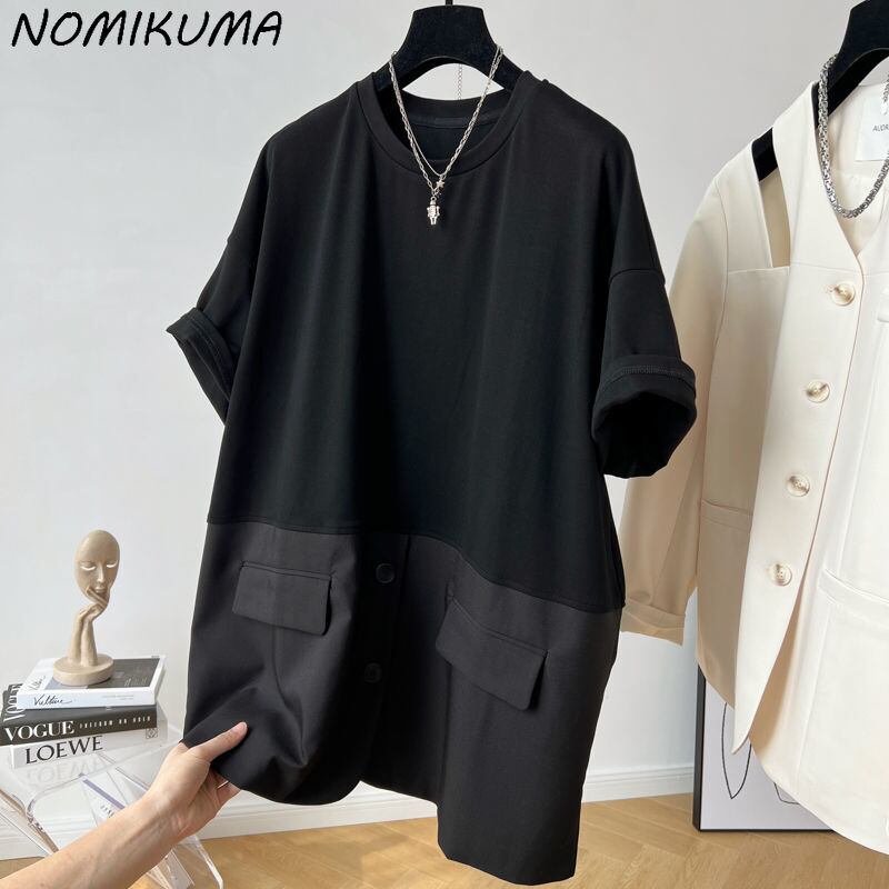 のみくまパッチワークフェイクツーピースTシャツドレス女性因果半袖Oネック2022スメムドレスVestidos ショート ハーフスリーブ kor65278591927