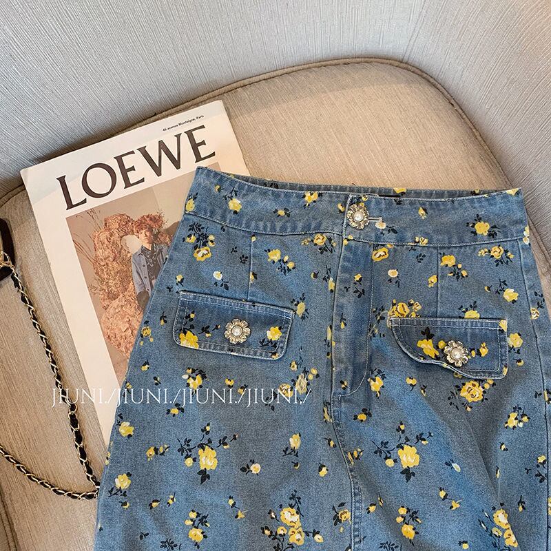 のみくまフローラルデミンツーピースレディースセットシックボウノットパフスリーブターンダウンカラーショートトップス+ウエストAラインミニスカート リボン 花柄 kor76154069888