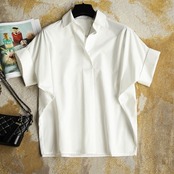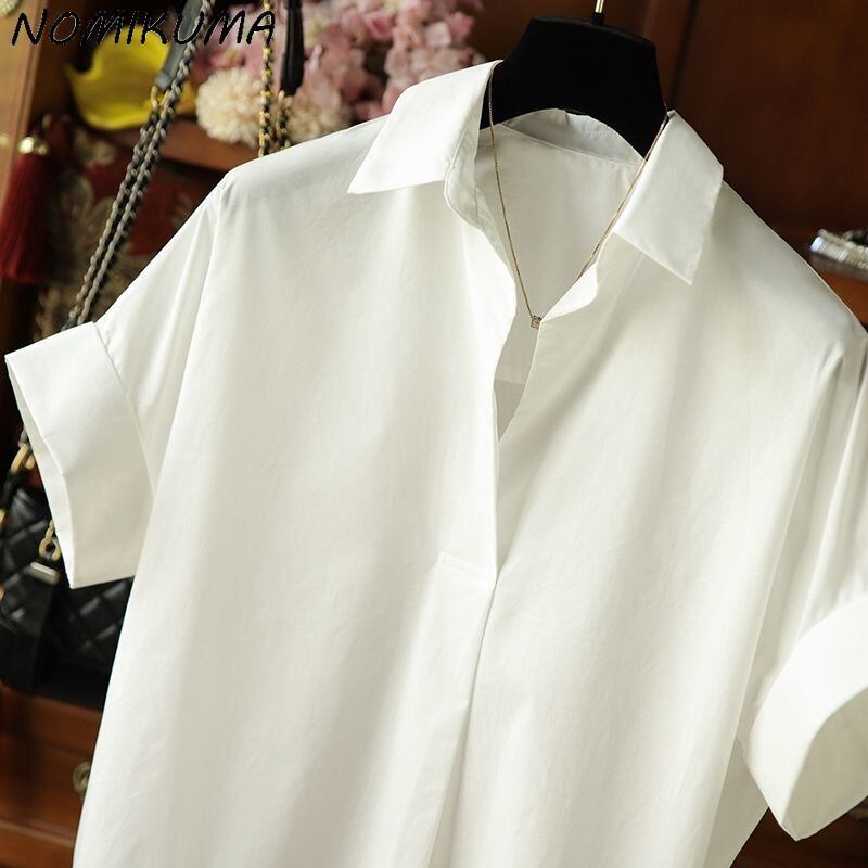 Nomikuma Women Blouses Causal Batwing Short Sleeve Tops Shirt 2022 Sumemr Turn-down Collar De Moda ショート 半袖 ハーフスリーブ ブラウス kor31877369294