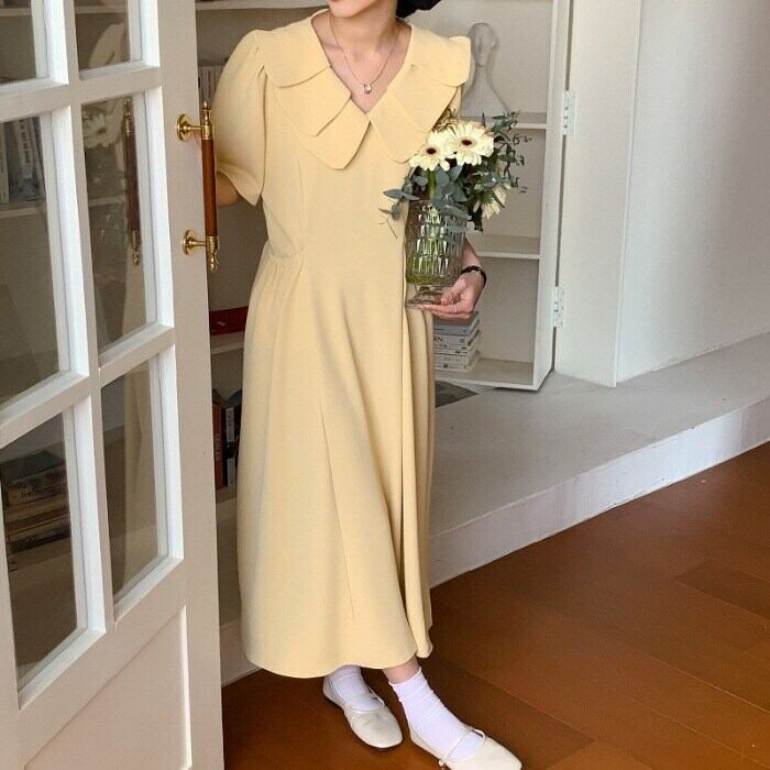 ノミクマシックフォールドフリルVネックワンピースレディースパフスリーブカジュアルポケットワンピース2022サマーソリッドベスティドス 夏物 ドレス ソリッドカラー kor68384095377