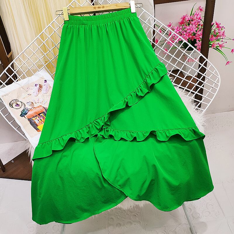 のみくま食用ツリー菌類フリルパッチワークスカートレディースウエストボトムス因果夏Aラインスカート サマー 夏物 kor68352027792