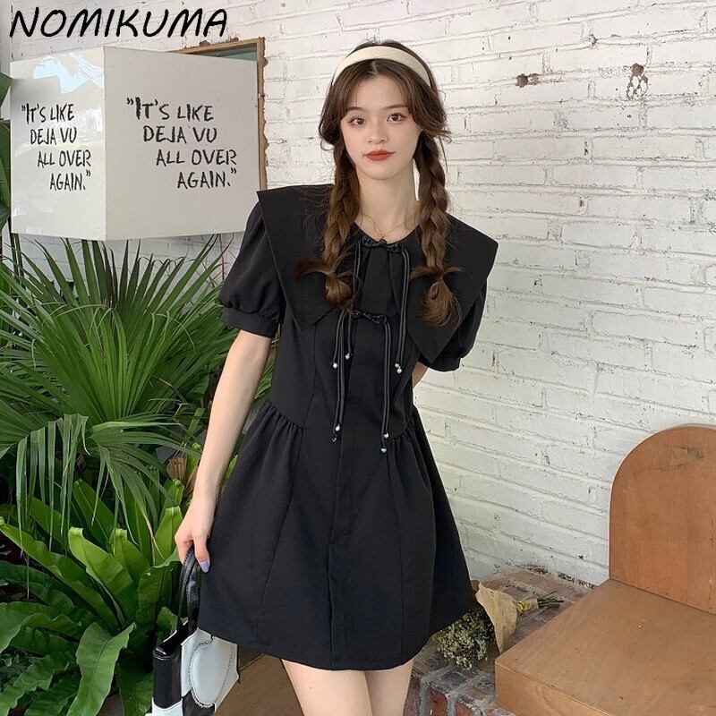 Nomikuma Vintage Tel Peter Pan Collar Woman Dress Puff Sleeve Waist A-line Dresses 2022 Summer A-line Vestido サマー 夏物 ドレス Aライン ビンテージ kor43281347768