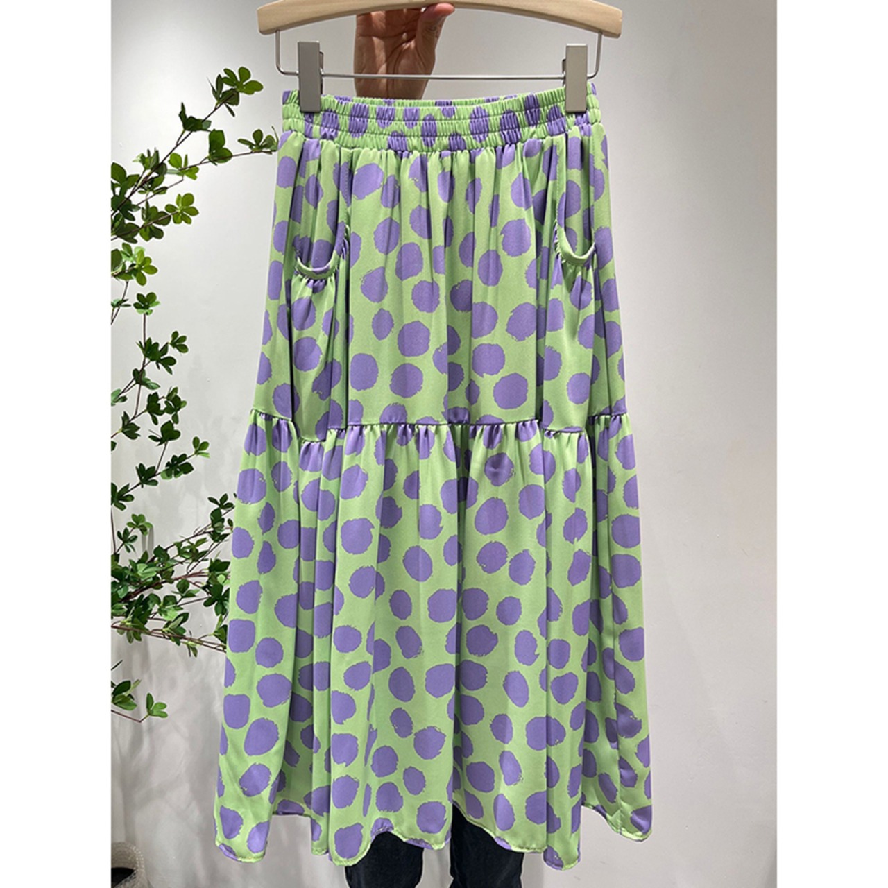 Nomikuma Chic Hit Colro Dot Skirts Womens Elastic Waist Skirt 2022 Summer Causal A-line Bottoms Faldas De エラスティック 伸縮 サマー 夏物 スカート Aライン kor3454097496