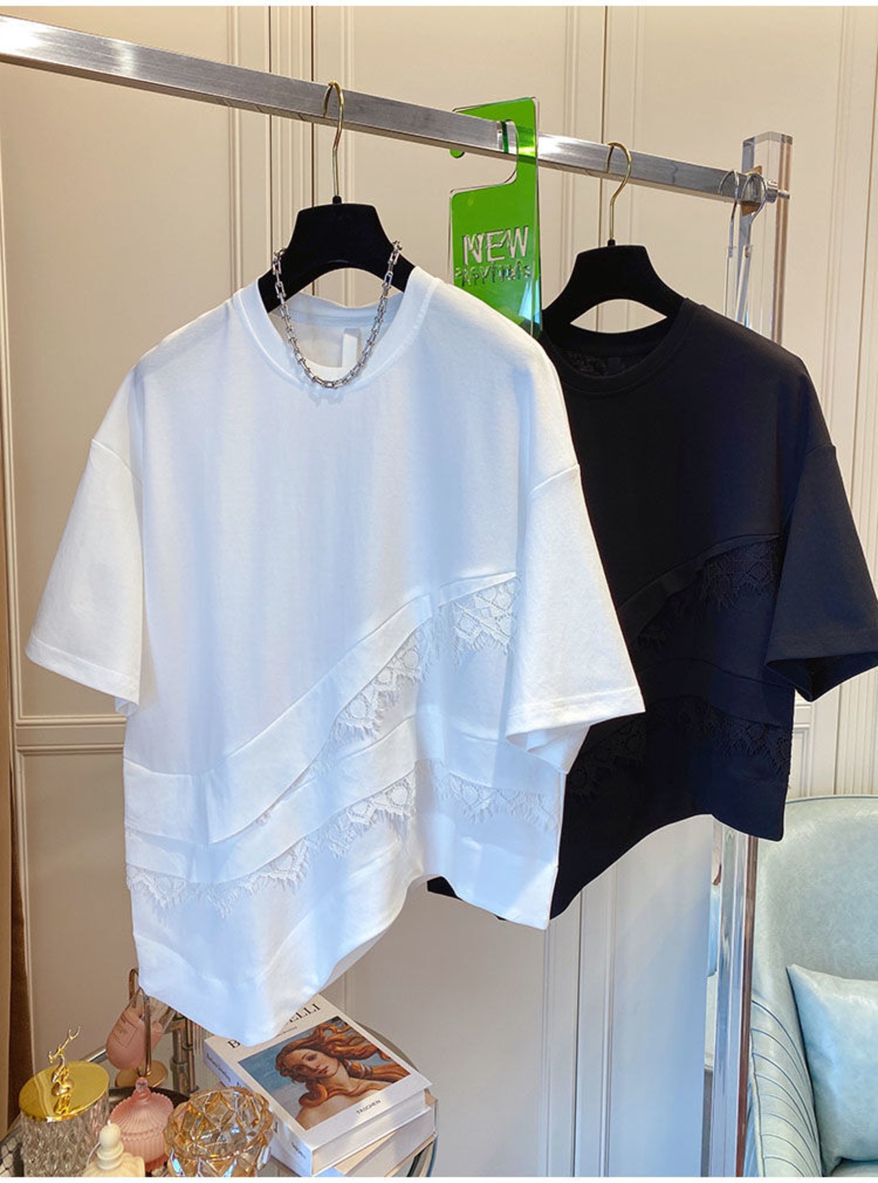 のみくま2022夏の女性Tシャツシックなレースフリルパッチワーク不規則なトップス因果半袖シックなグラフィックTシャツ ショート ハーフスリーブ サマー 夏物 kor88879843867