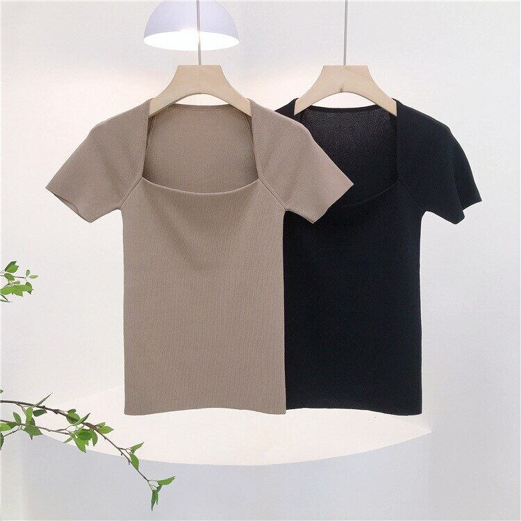 のみくまスクエアカラースリムTシャツ半袖グラフィックTシャツ2022夏トップス婦人服 ショート ハーフスリーブ サマー 夏物 スクウェア kor82164965646