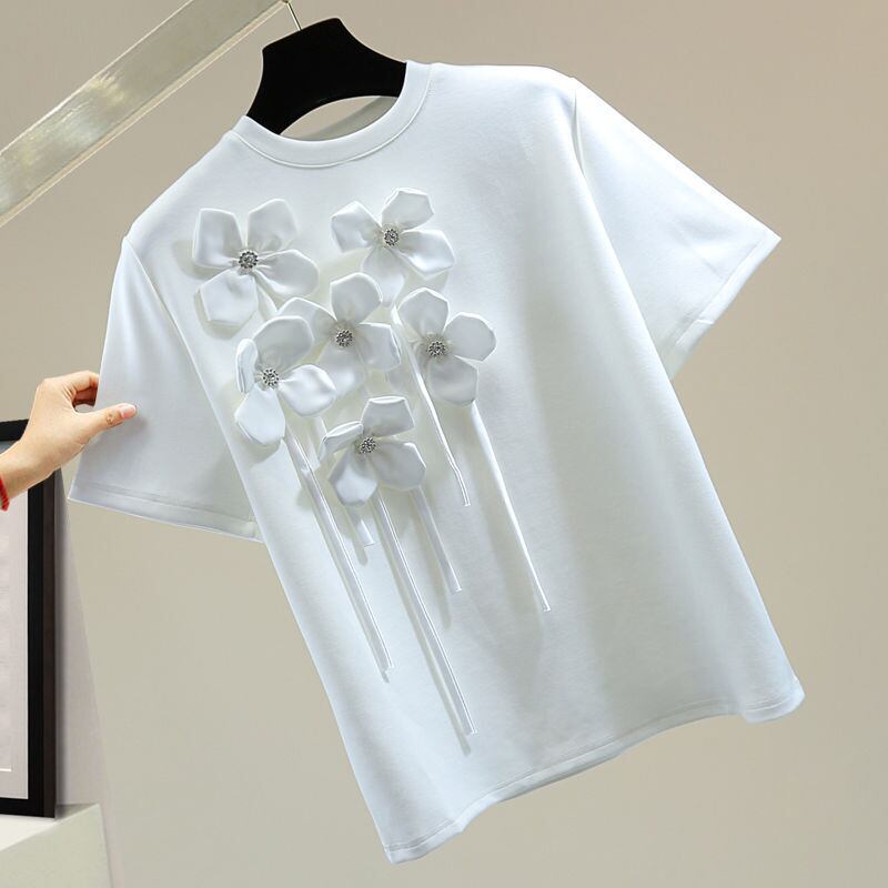 ノミクマシックダイアモンドTelフローラル半袖Tシャツ2022夏の女性トップス因果OネックグラフィックTシャツ ショート ハーフスリーブ サマー 夏物 花柄 kor33845074975