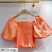 サマーオフショルダーブラウス女性ストラップレスパフスリーブトップシャツセクシースリムショートデモダ 夏物 kor62216627348