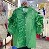 のみくまフリルフラワーパフスリーブブラウスシャツレディースサマーコーザルターンダウンカラーデモダ2022 夏物 フラワーデザイン kor4449168655