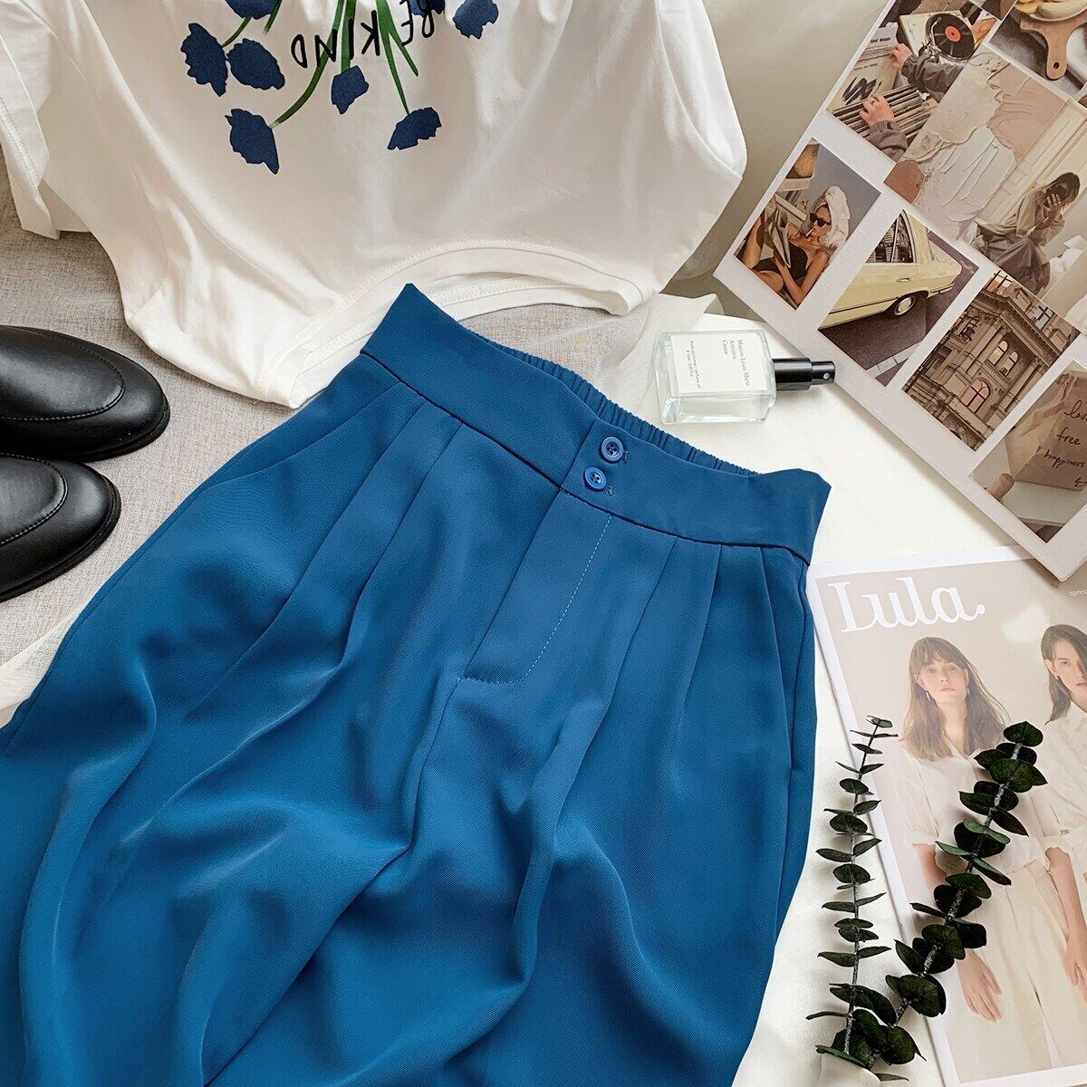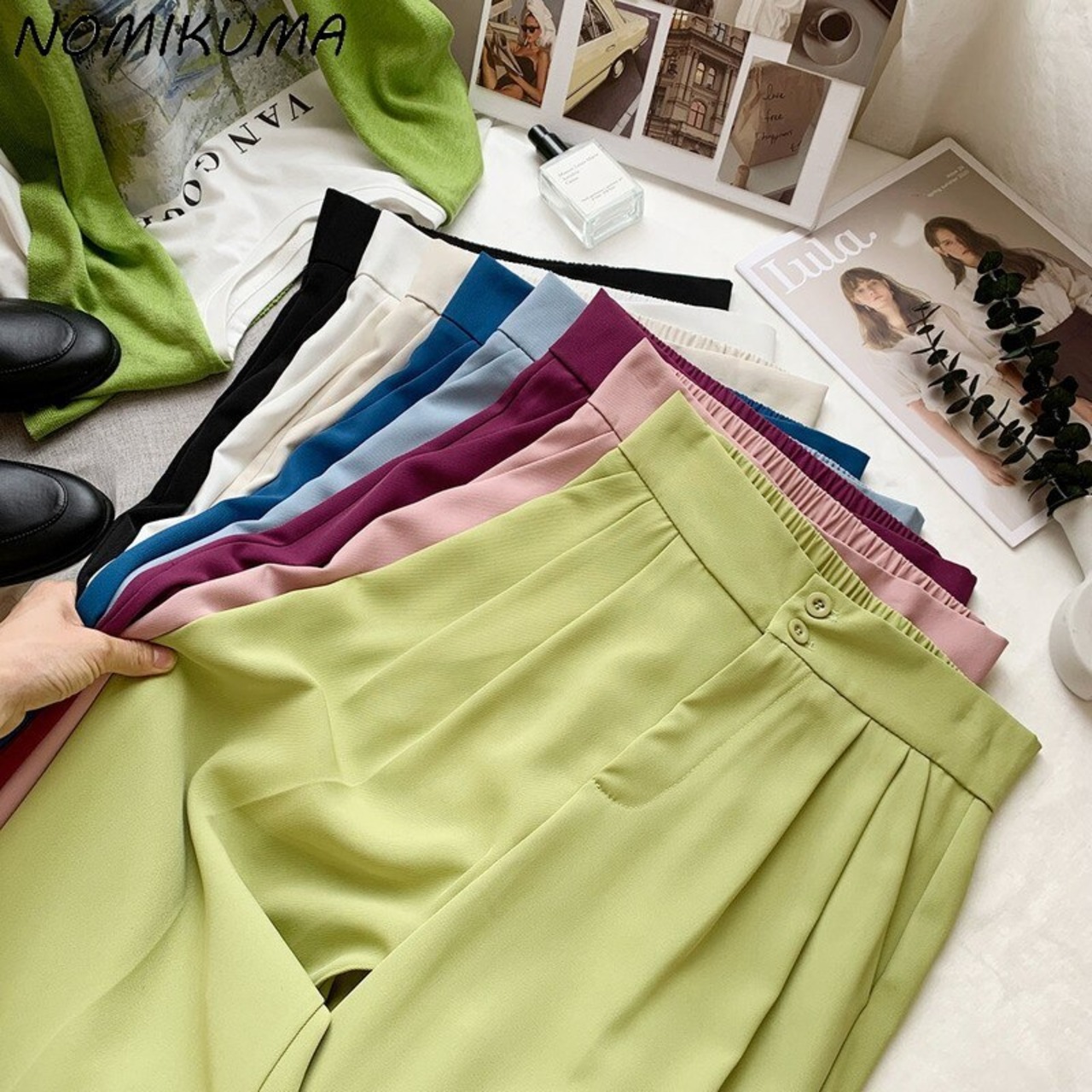 ノミクマウエストウーマンパンツ2022サマーロングパンツCausalSolidWide Leg Pants Pantalones De 夏物 ワイドレッグ ワイドパンツ ソリッドカラー kor81098932782