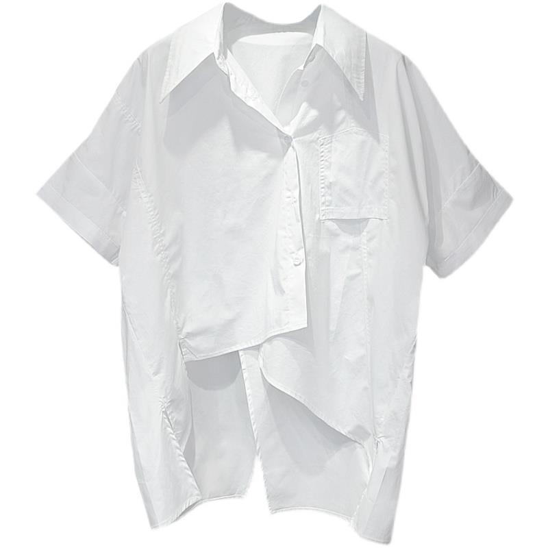 ノミクマイレギュラーソリッドウィメンズブラウス2022サマー半袖ターンダウンカラーシャツバックスプリットデモダ ショート ハーフスリーブ 夏物 ソリッドカラー kor66444787104