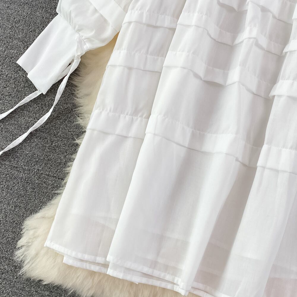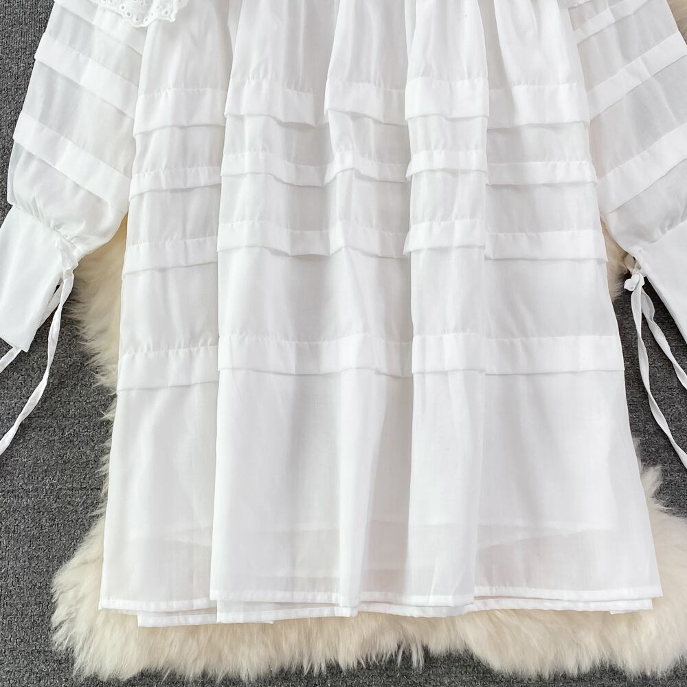 のみくまスウィートレースフリルウーマンドレスシックなピーターパンカラーパフスリーブサマーコーザルAラインドレス 大人ガーリー キュート カジュアル 夏物 kor23782149126