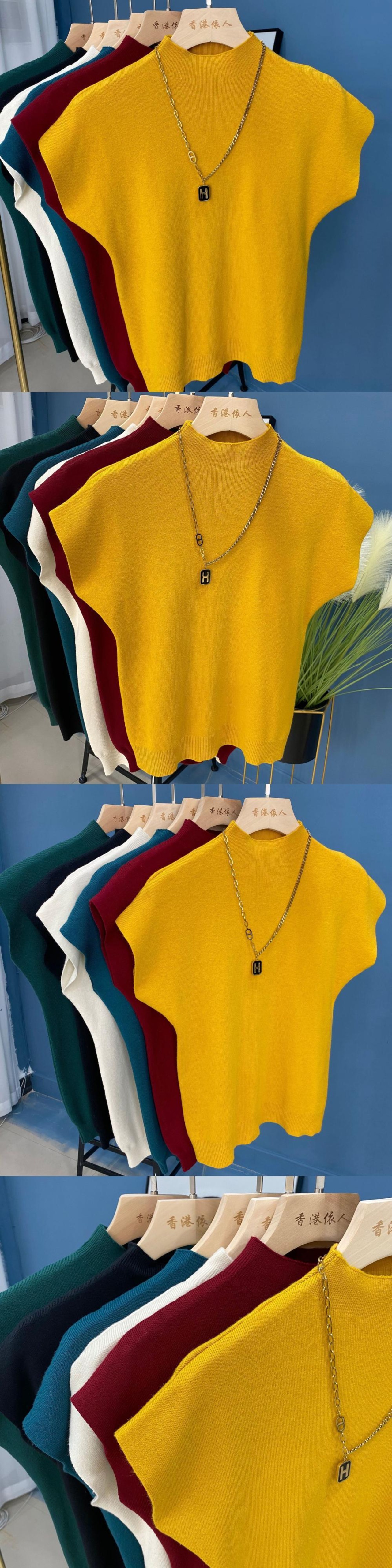夏半袖ニットTシャツ女性ソリッドグラフィックTシャツ因果プルオーバーセータートップス ショート ハーフスリーブ サマー 夏物 ソリッドカラー kor1749587142