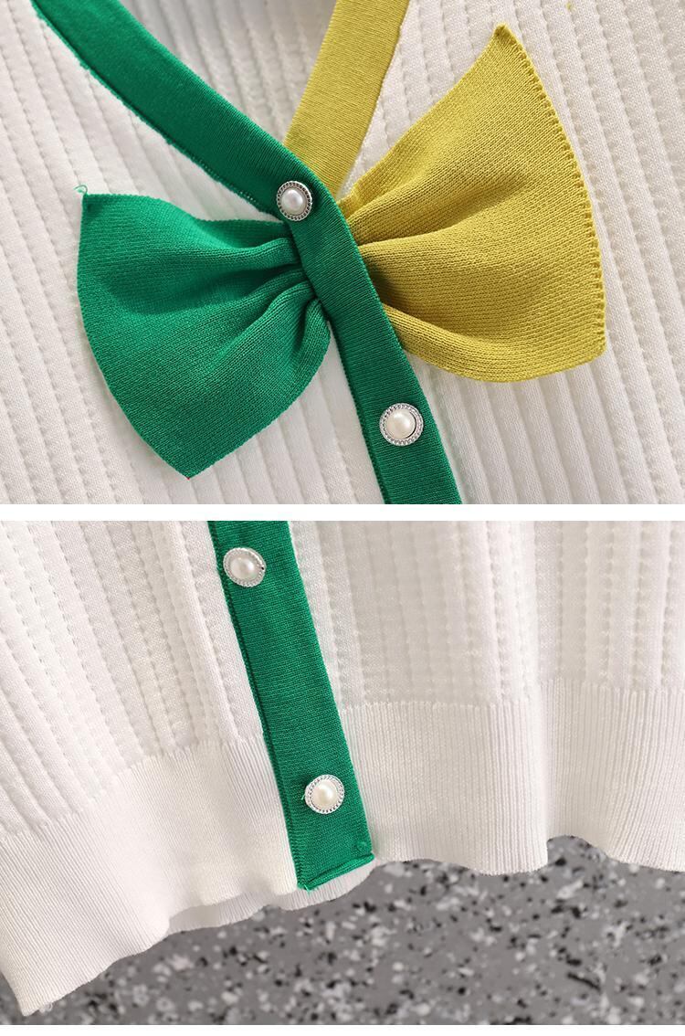 ノミクマヒットカラーボウノットニットカーディガンシックパフスリーブVネックレディースニット2022サマーシンセーターコート リボン 夏物 kor48839644889