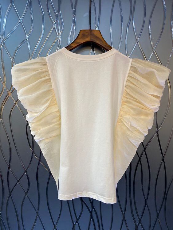 ノミクマフォールズフリルパッチワークウーマンTシャツカジュアルフライングスリーブOネックトップス2022サマーグラフィックTシャツ 夏物 kor62644132567