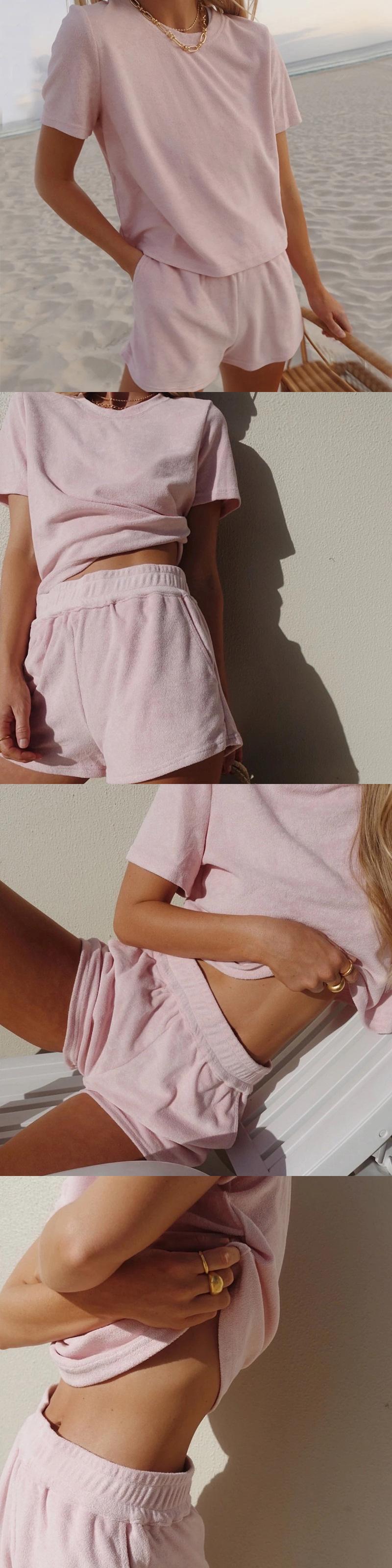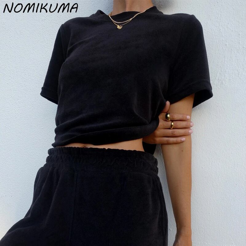 ノミクマ2022夏の女性セット因果的ソリッド半袖トップティー+伸縮性ウエストワイドレッグショーツ2ピース衣装 ショート ハーフスリーブ エラスティック サマー 夏物 ブルマー ワイドパンツ Tシャツ ソリッドカラー kor93544930389