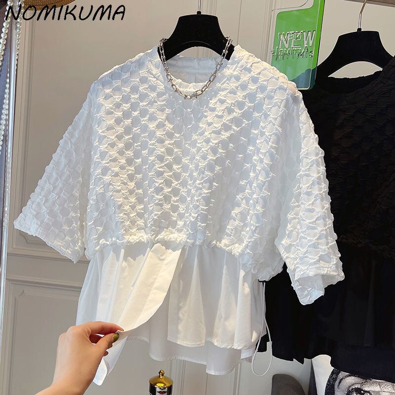 ノミクマ2022サマードローストリングウエストTシャツレディース半袖ドールシャツスウィートツーピーストップス 大人ガーリー キュート カジュアル 夏物 kor23406906633