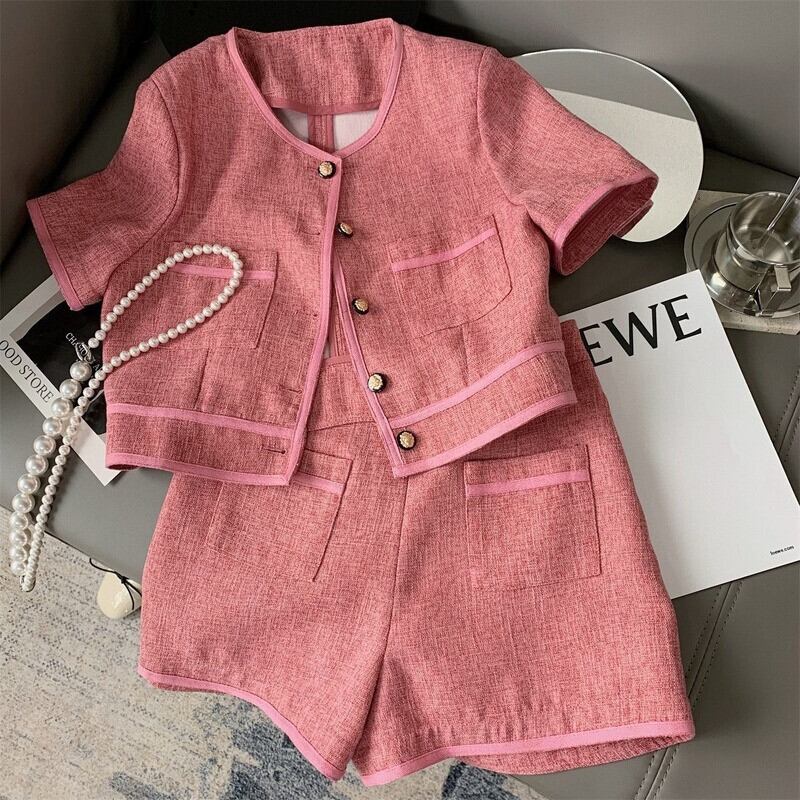 のみくまツーピースレディースセット2022夏服半袖Oネックコートトップ+ウエストショーツスーツ ショート ハーフスリーブ サマー 夏物 ブルマー kor89086624966