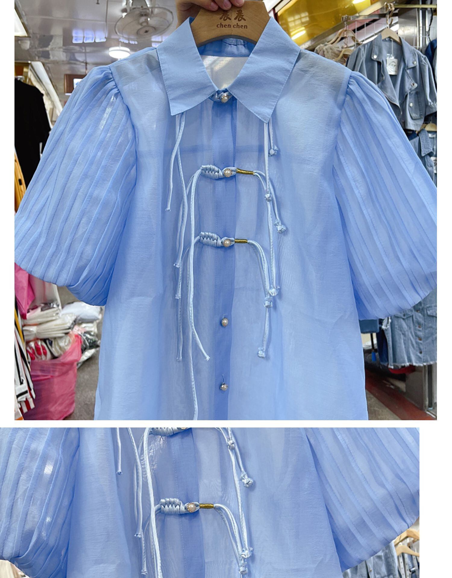 ノミクマヴィンテージシングルブレストTelレディースシャツシックフォールドパフスリーブシフォンブラウス2022夏 サマー 夏物 ビンテージ kor48164478843
