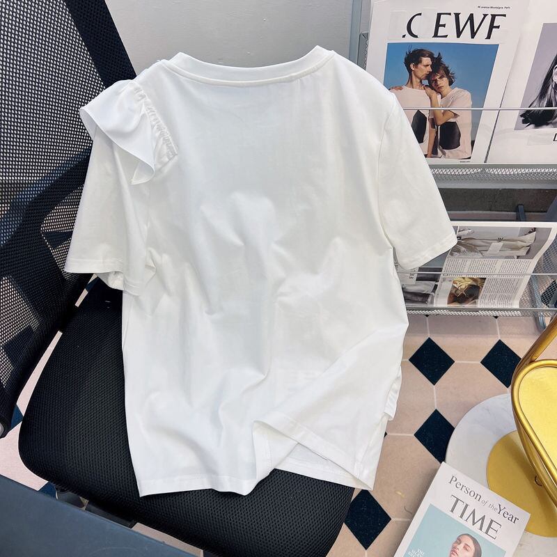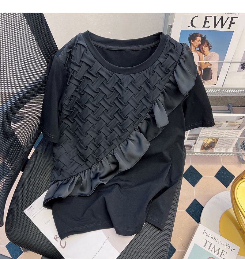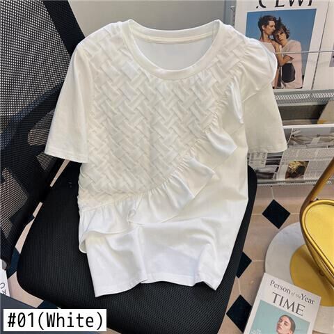 のみくまシックフリルパッチワークトップスカジュアル半袖OネックTシャツレディース2022サマースウィートTシャツ ショート ハーフスリーブ 大人ガーリー キュート 夏物 kor87611662828