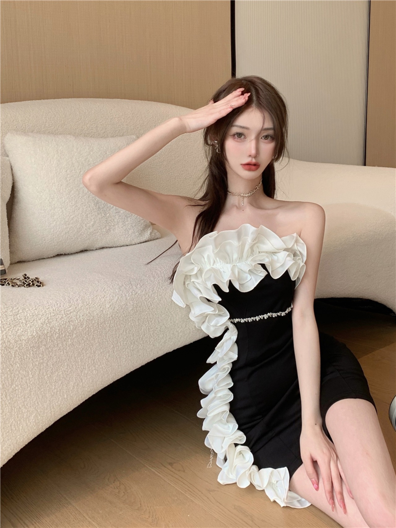 Nomikuma Hit Color Folds Ruffle Patchwork Bodycorn Dress Women 2022 Summer Sleevelss Slash Neck Chic Diamonds Vestido サマー 夏物 kor96956791622