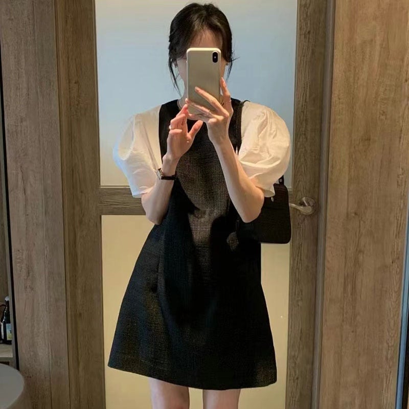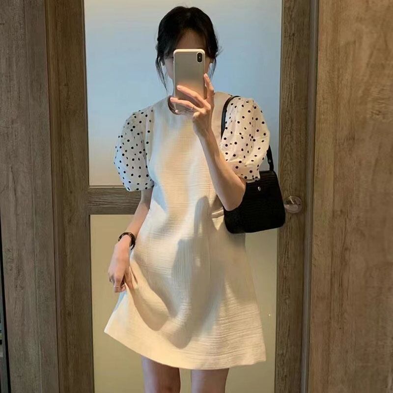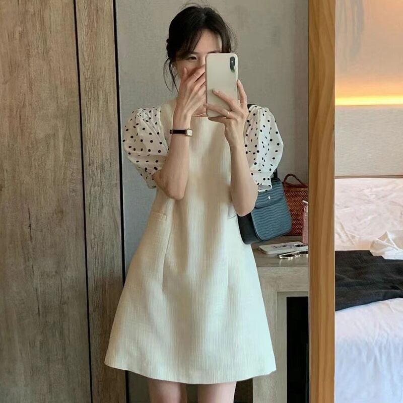ノミクマシックスウィートヒットカラーパフスリーブドレス女性カジュアルOネック2022年夏ドレスAラインミニAラインベスティドス 大人ガーリー キュート サマー 夏物 kor96296371801