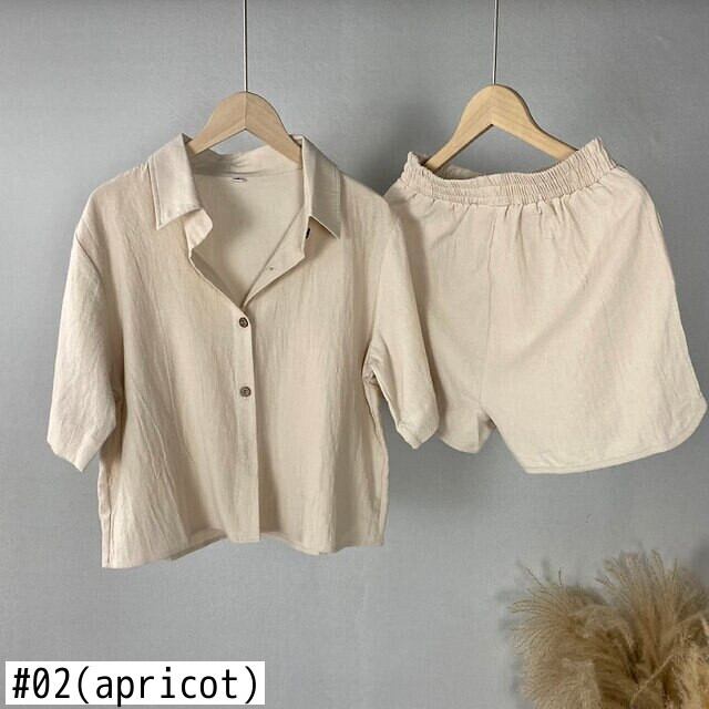 のみくま2022夏の女性セット半袖ターンダウンカラーブラウストップ+伸縮性ウエストワイドレッグショーツ2枚 ショート ハーフスリーブ エラスティック サマー 夏物 ブルマー ワイドパンツ kor47964791514